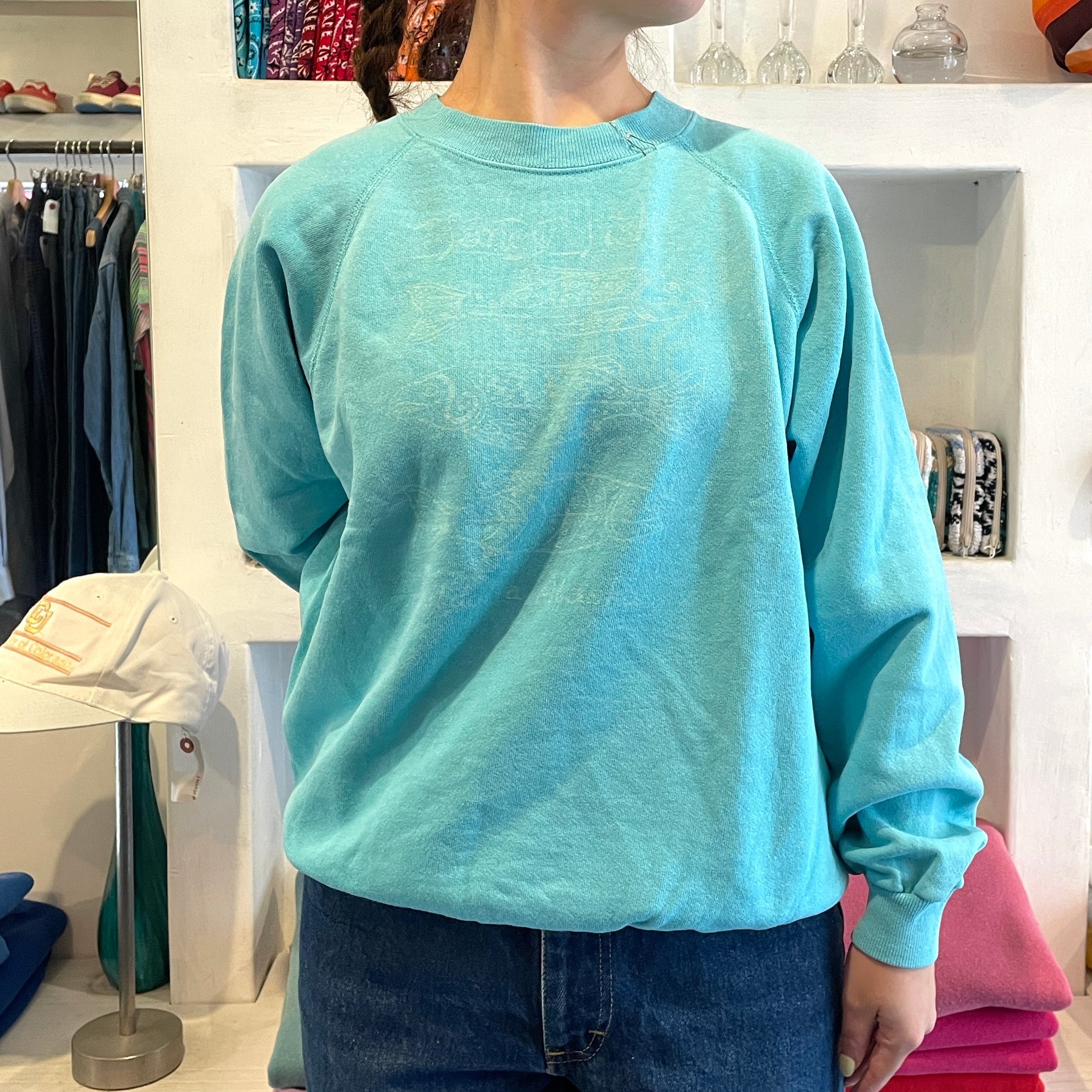 ライトブルーカラーのスウェット。