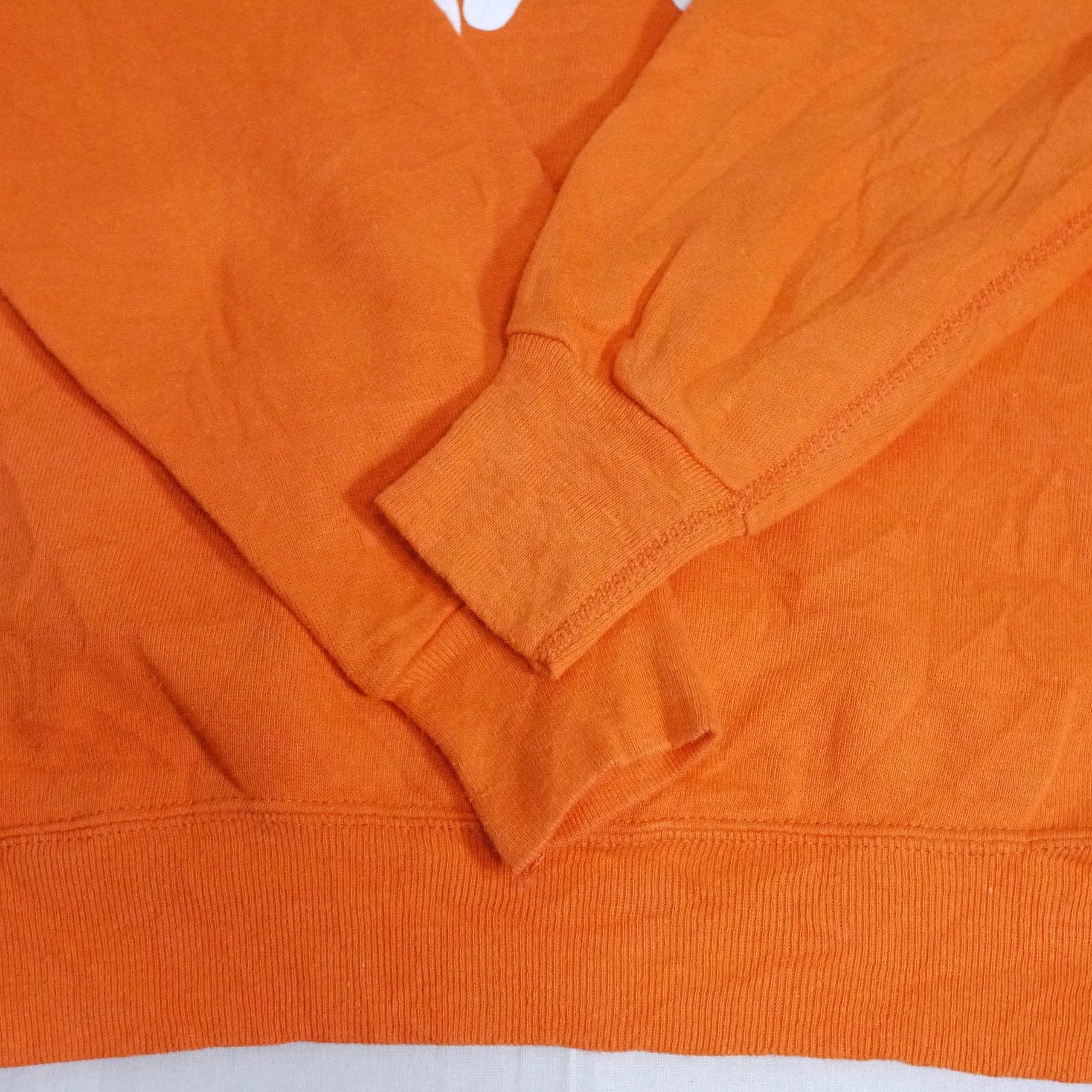 オレンジカラーのスウェット。