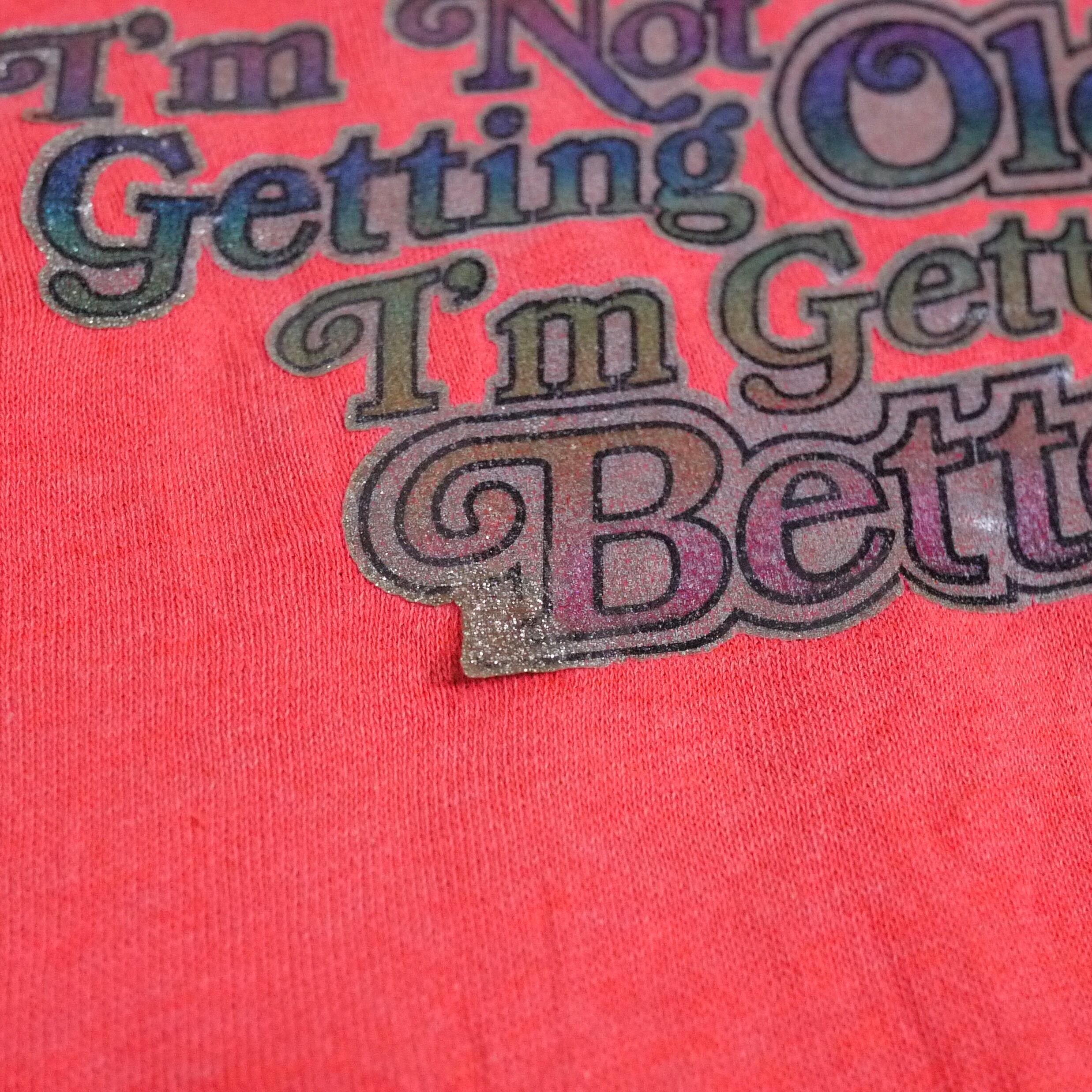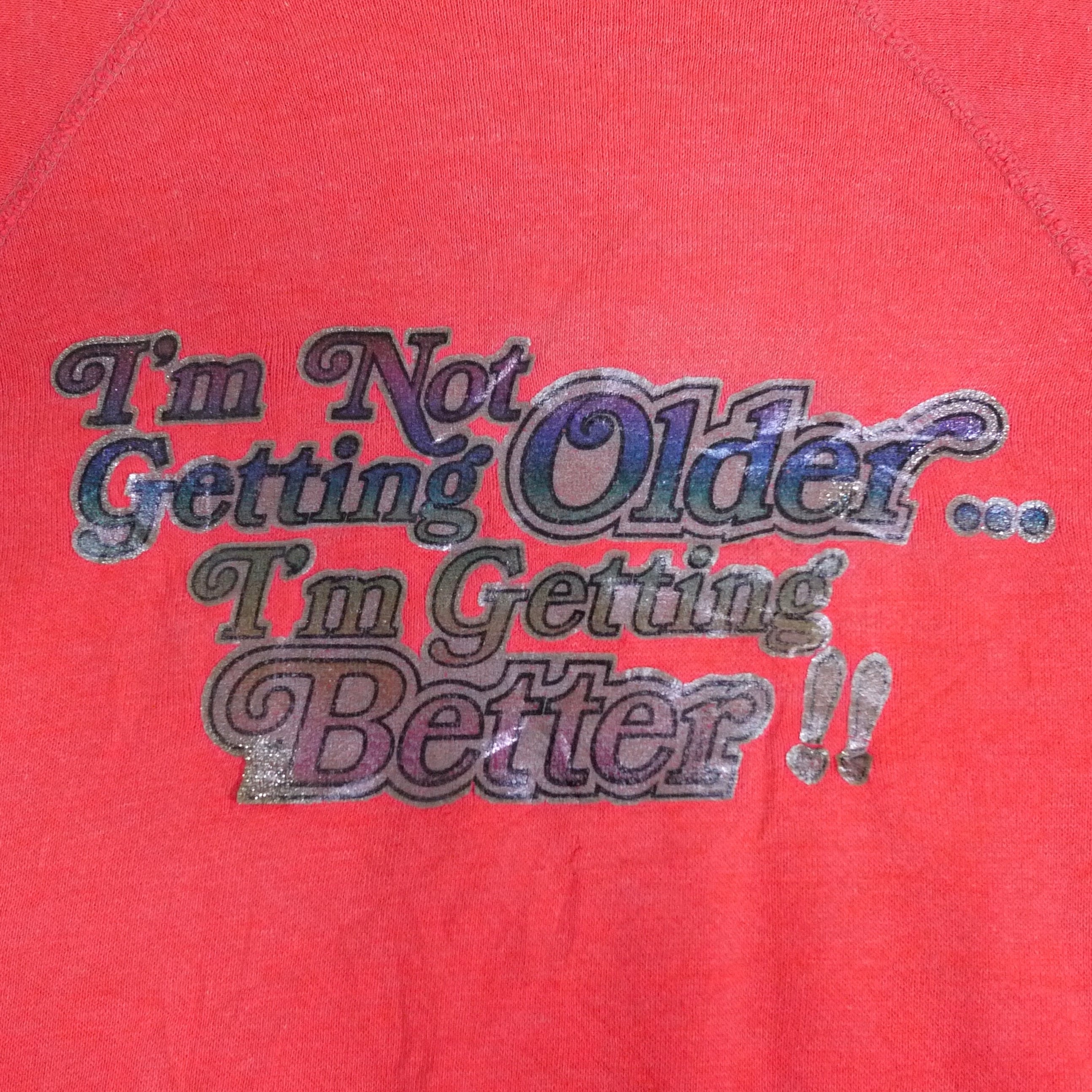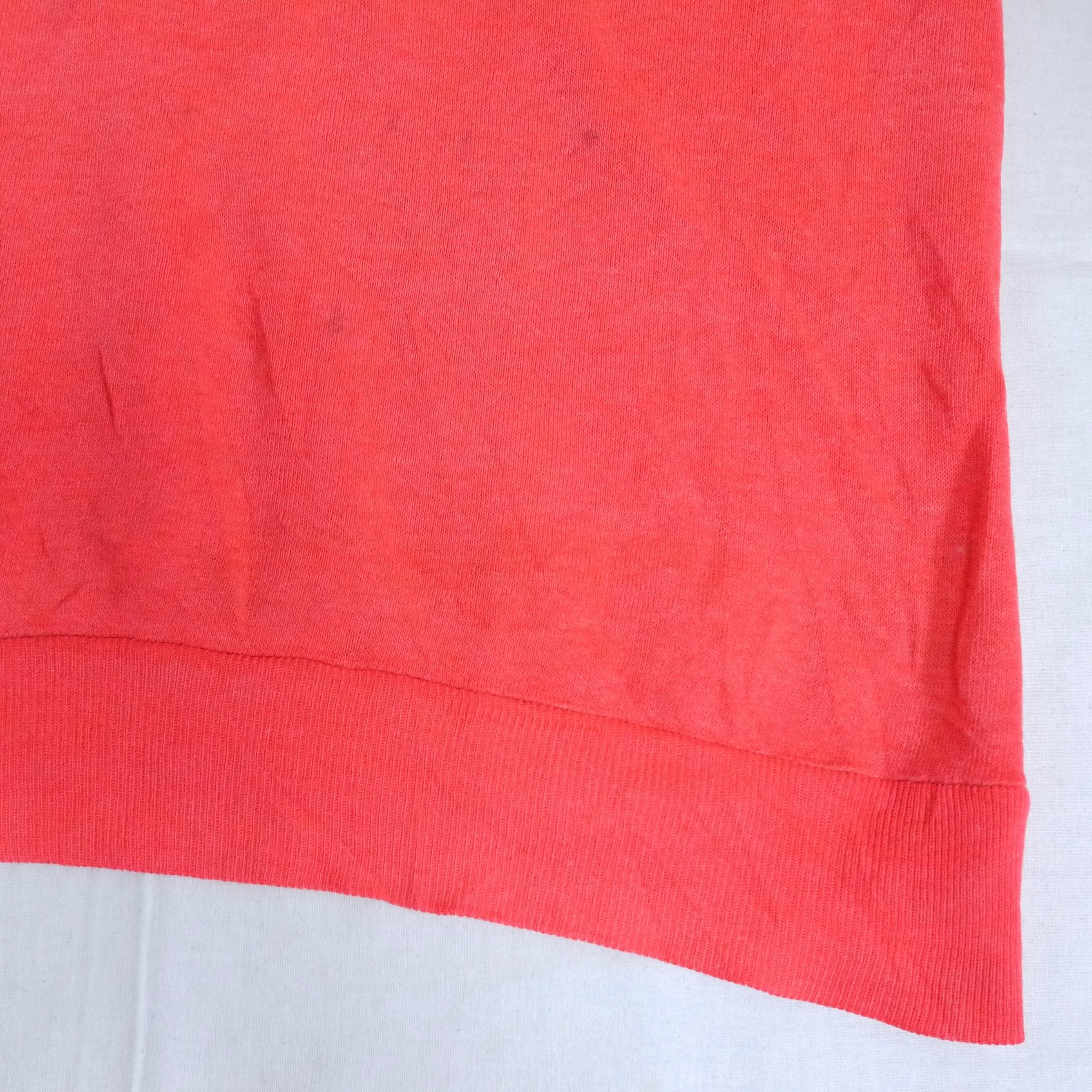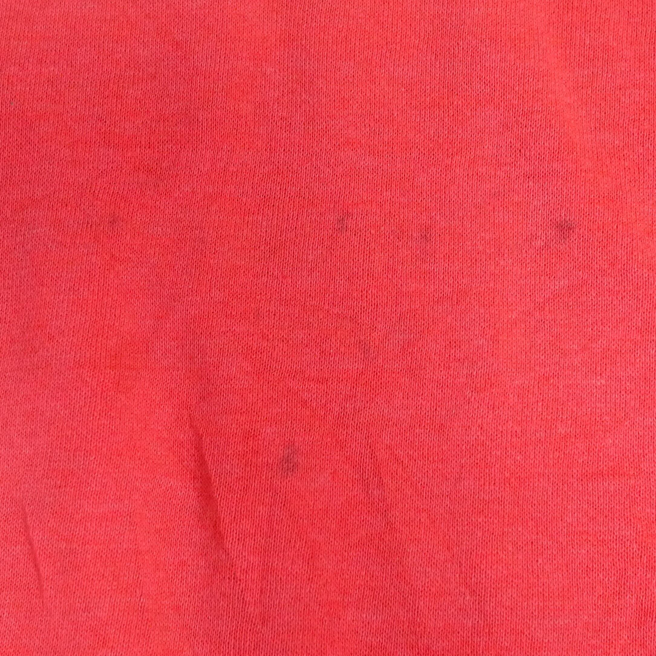 状態は、プリント下部に複数の細かな汚れ。形崩れして左裾が伸びています。その他、経年による使用感はありますが、着用に問題はありません。