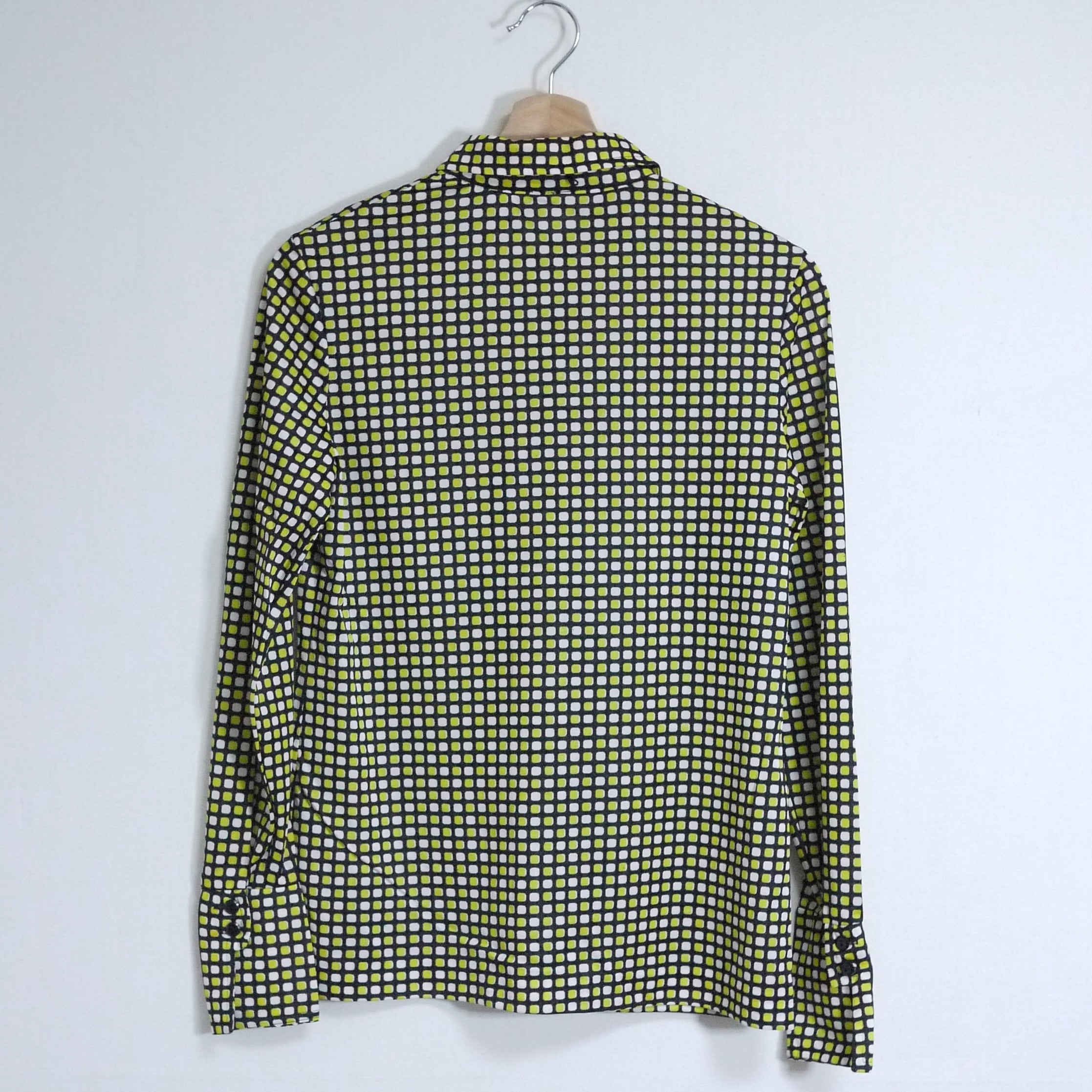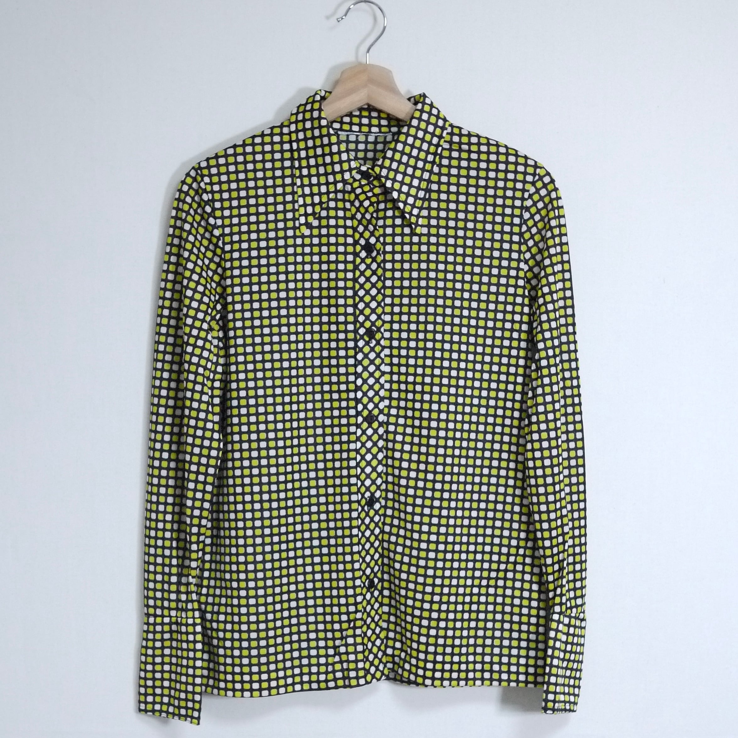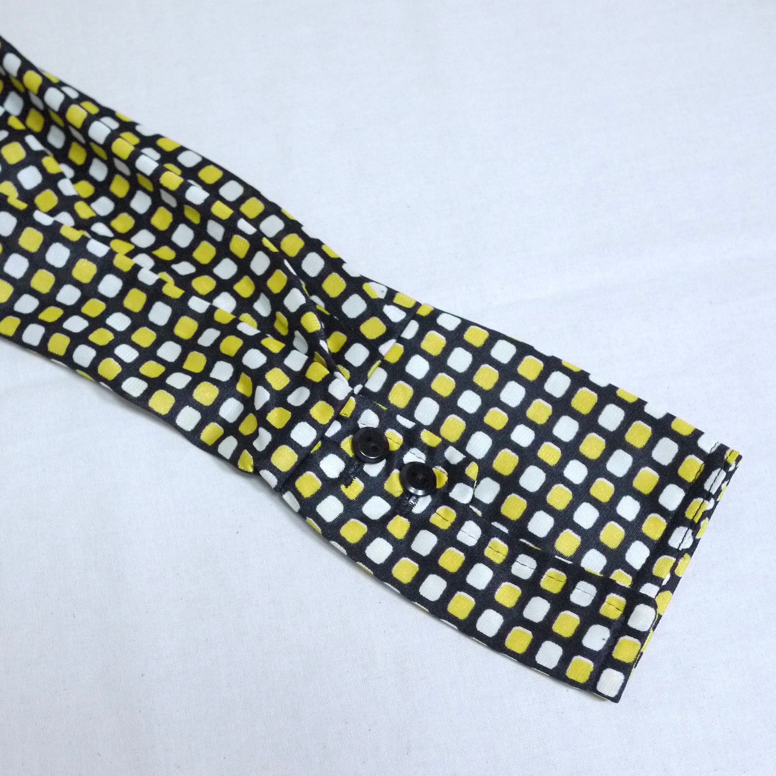 ブラックカラーがベースのスクエア柄シャツ。
