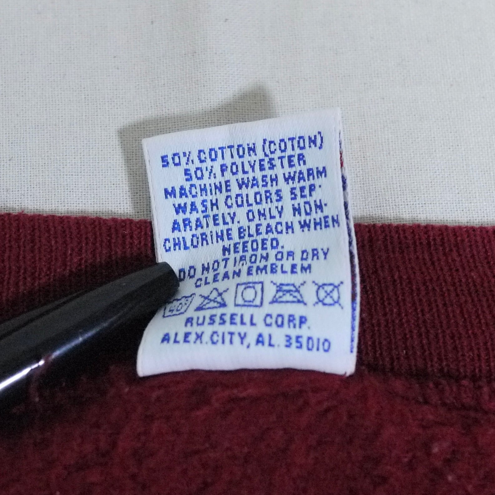アメリカ製。ポリエステル50%、コットン50%。