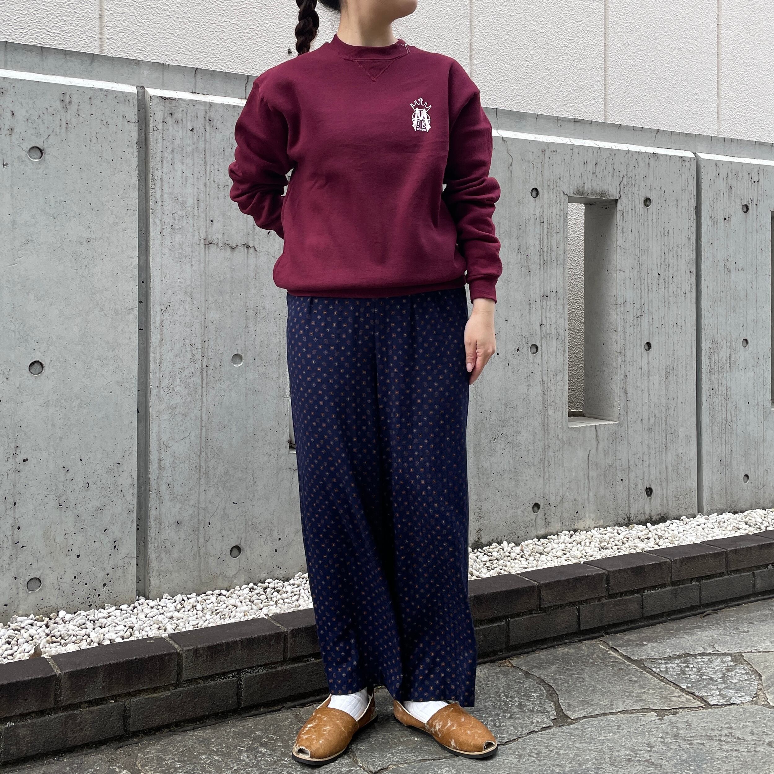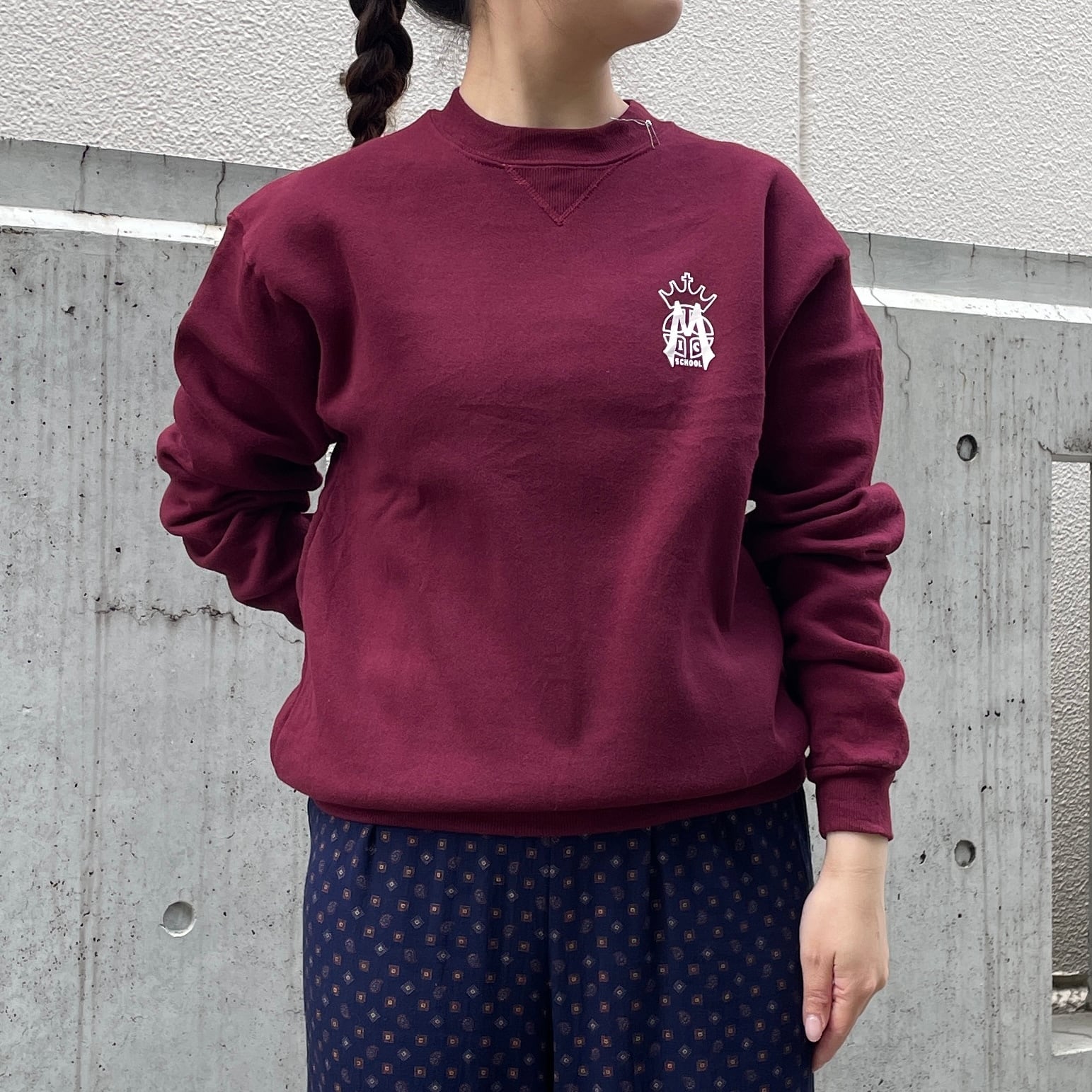 バーガンディカラーのスウェット。