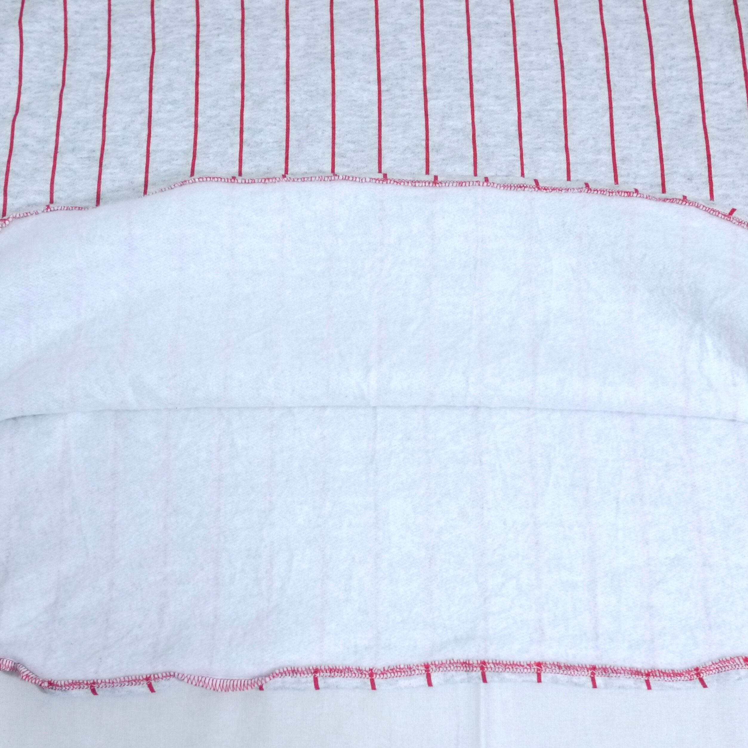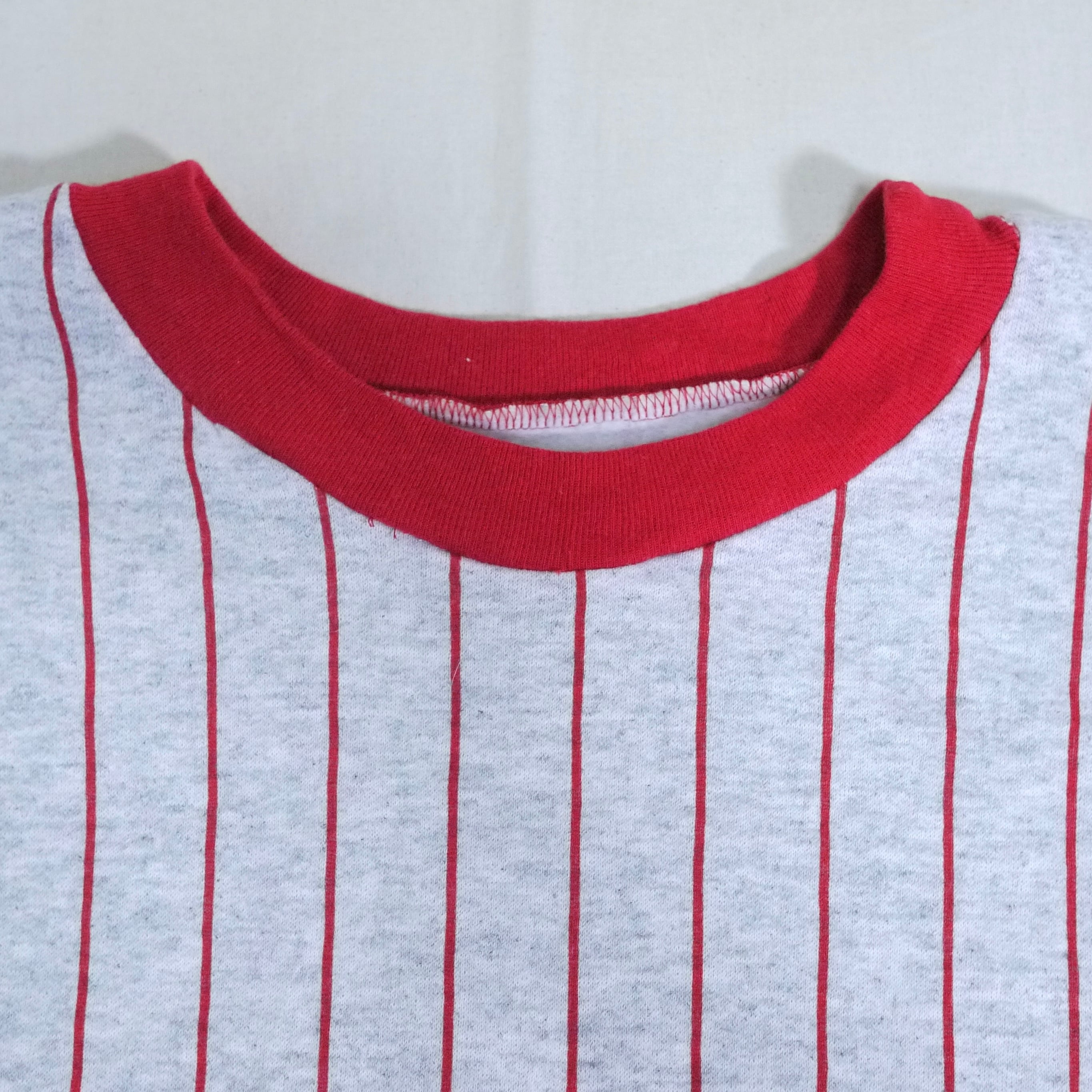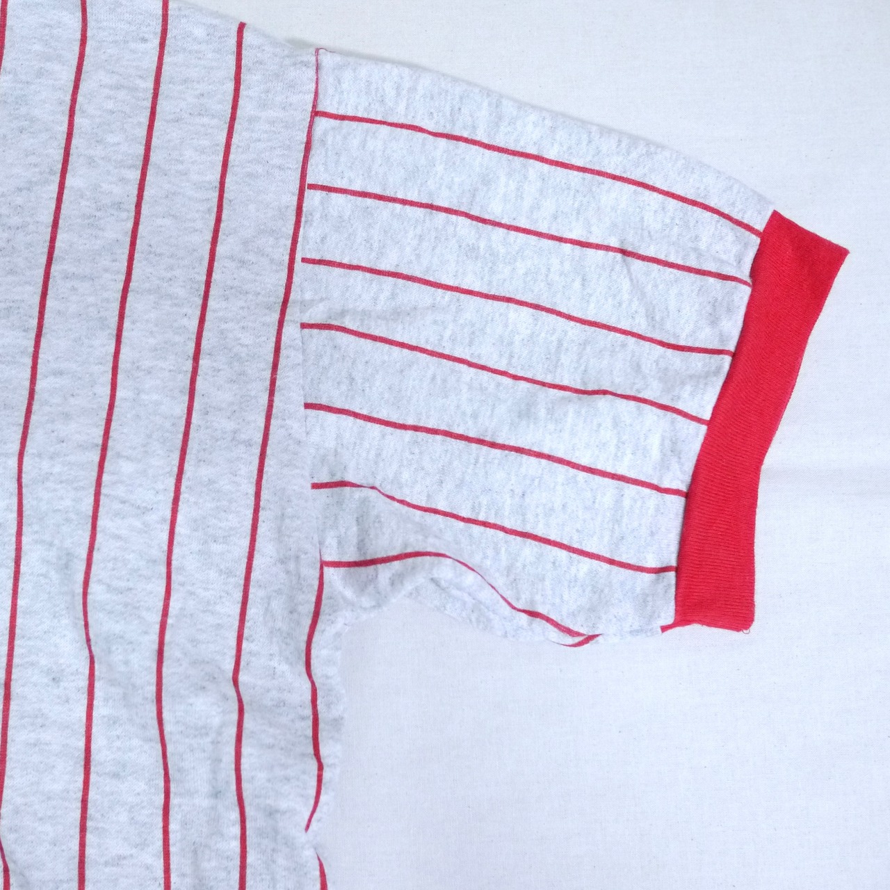 レッドカラーのストライプ柄が印象的。