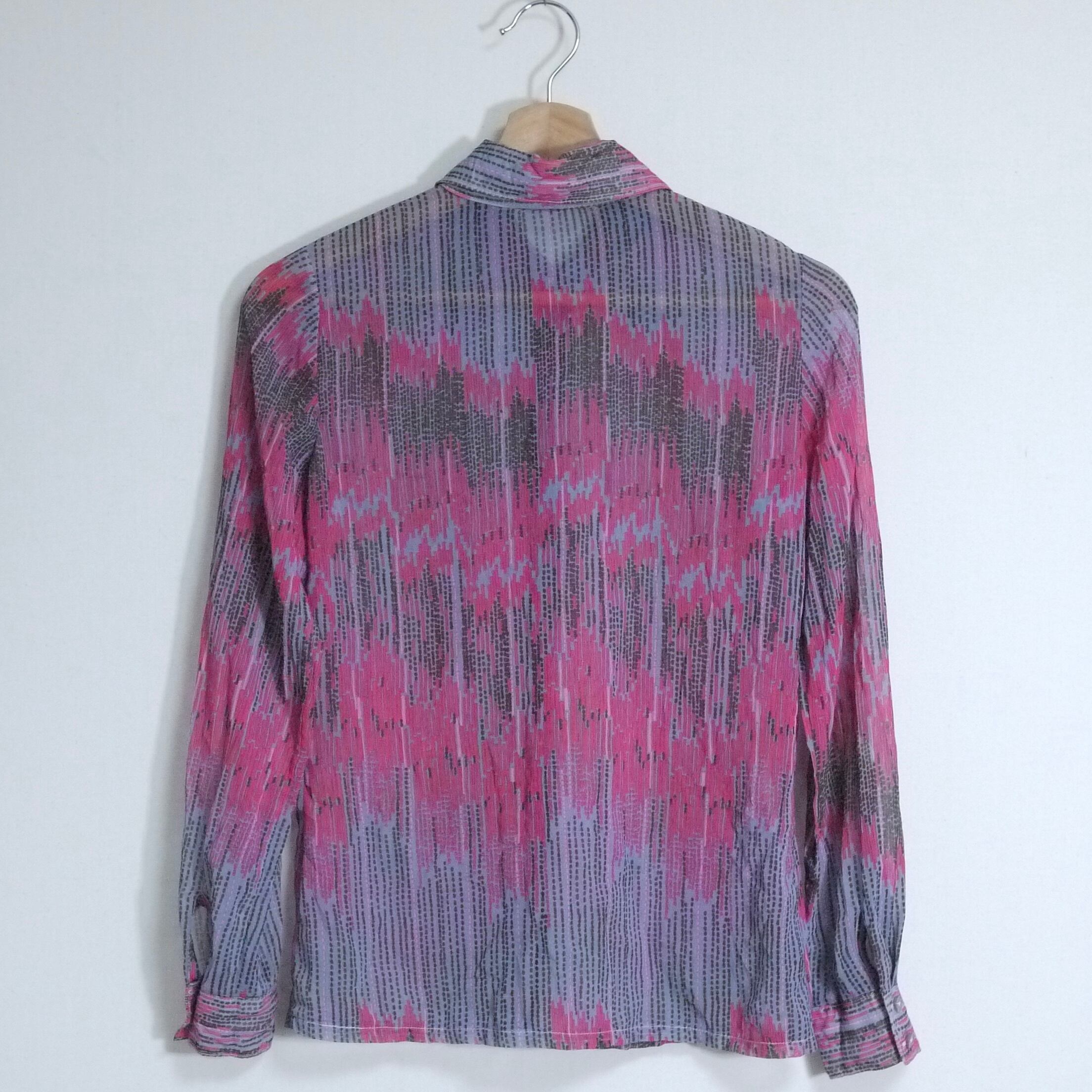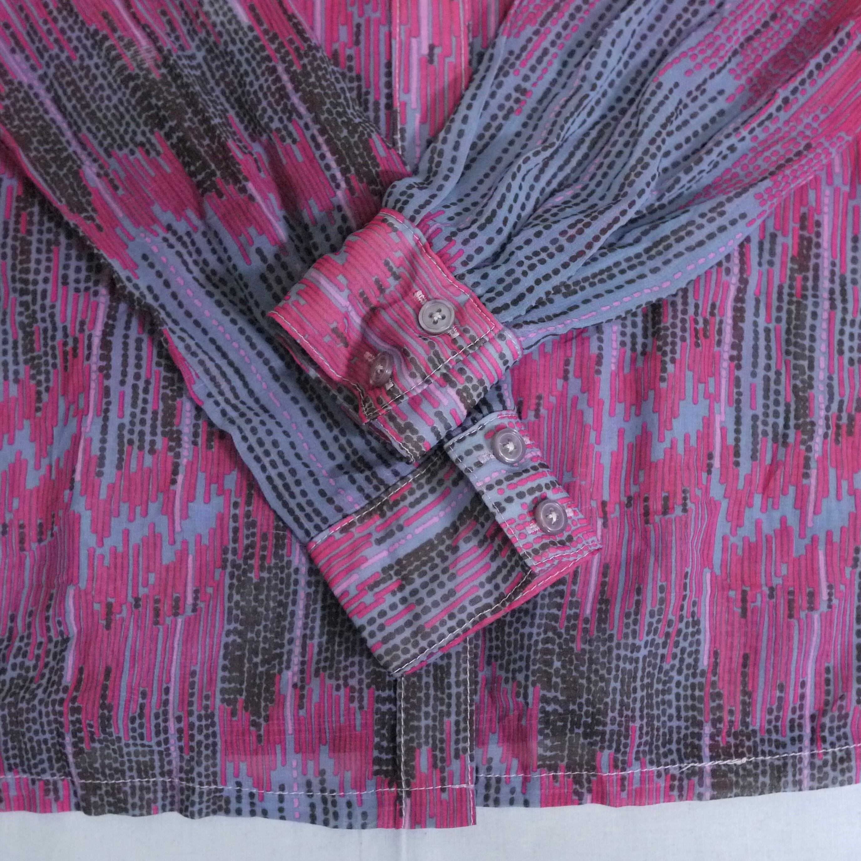 グレー×ピンクの長袖シャツ。