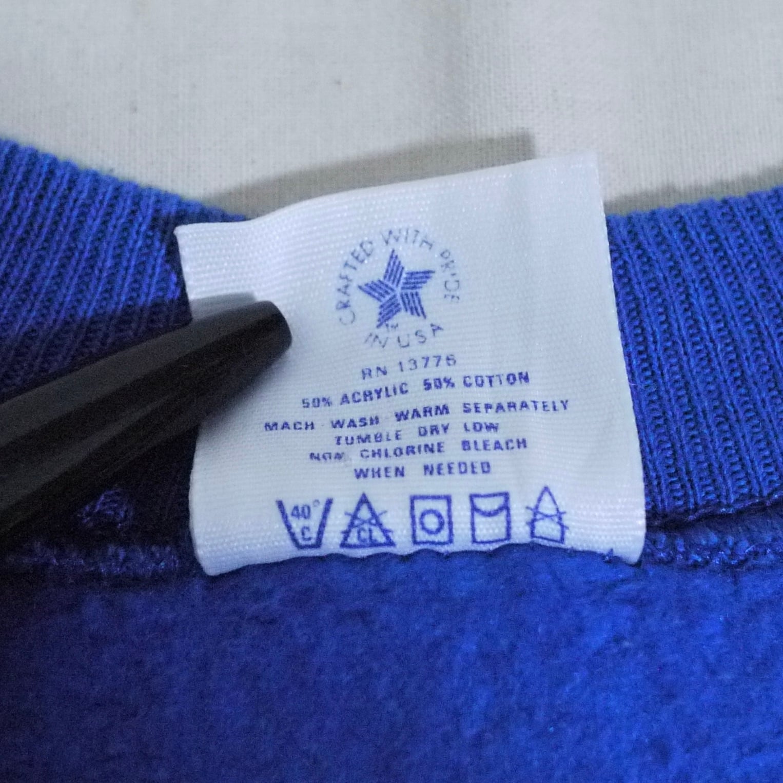 アメリカ製。コットン50%、アクリル50%。88年のコピーライト入り。