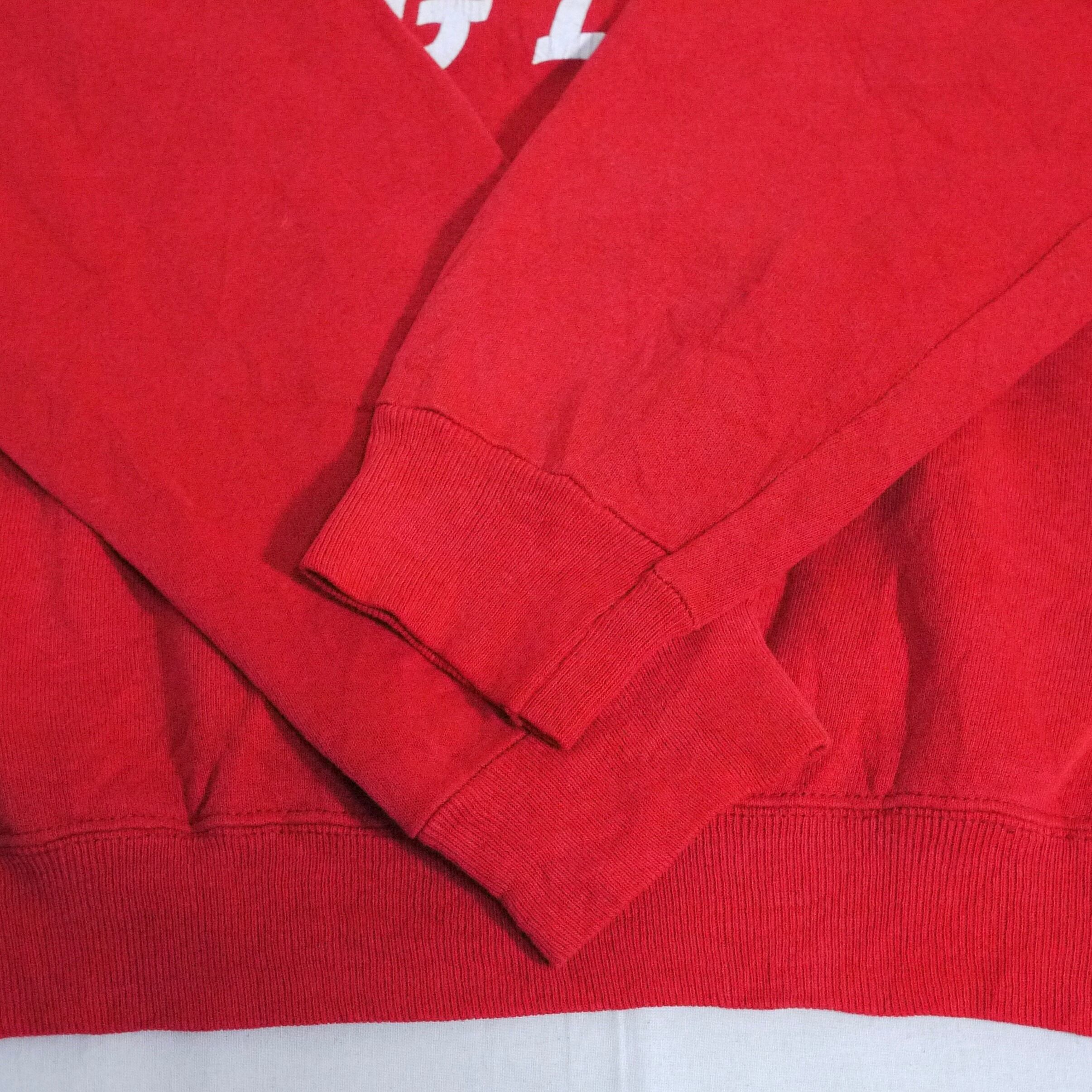 レッドカラーのスウェット。