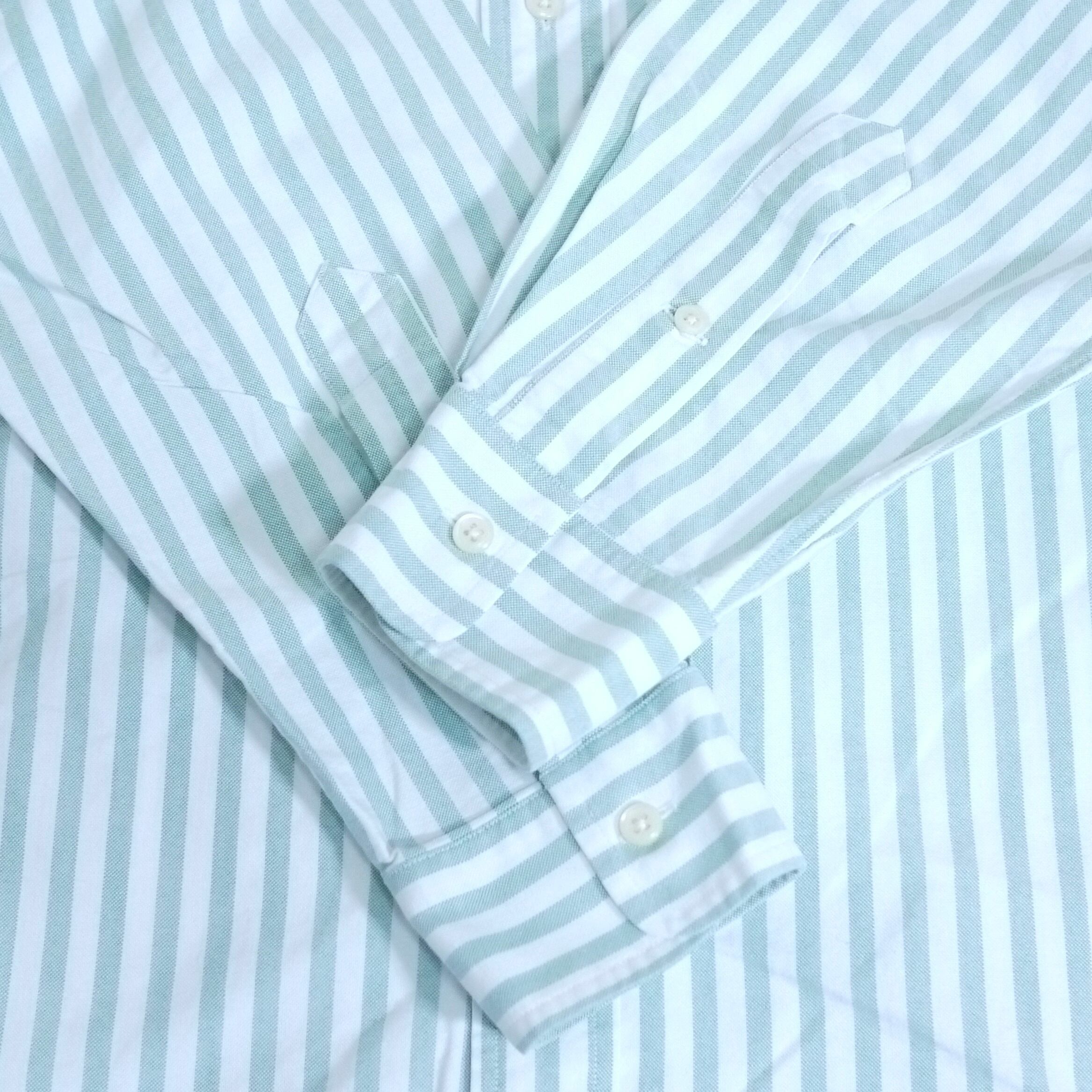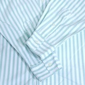 グリーン×ホワイトのストライプ柄B.D.シャツ。