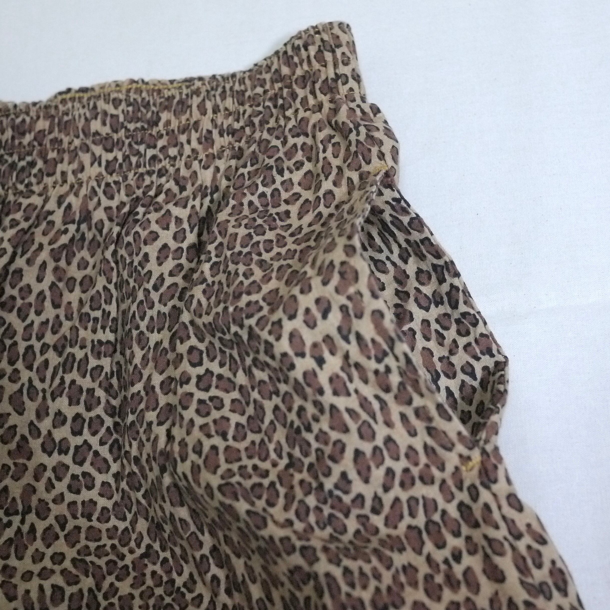 ブラウンカラーのレオパード柄イージーショートパンツ。