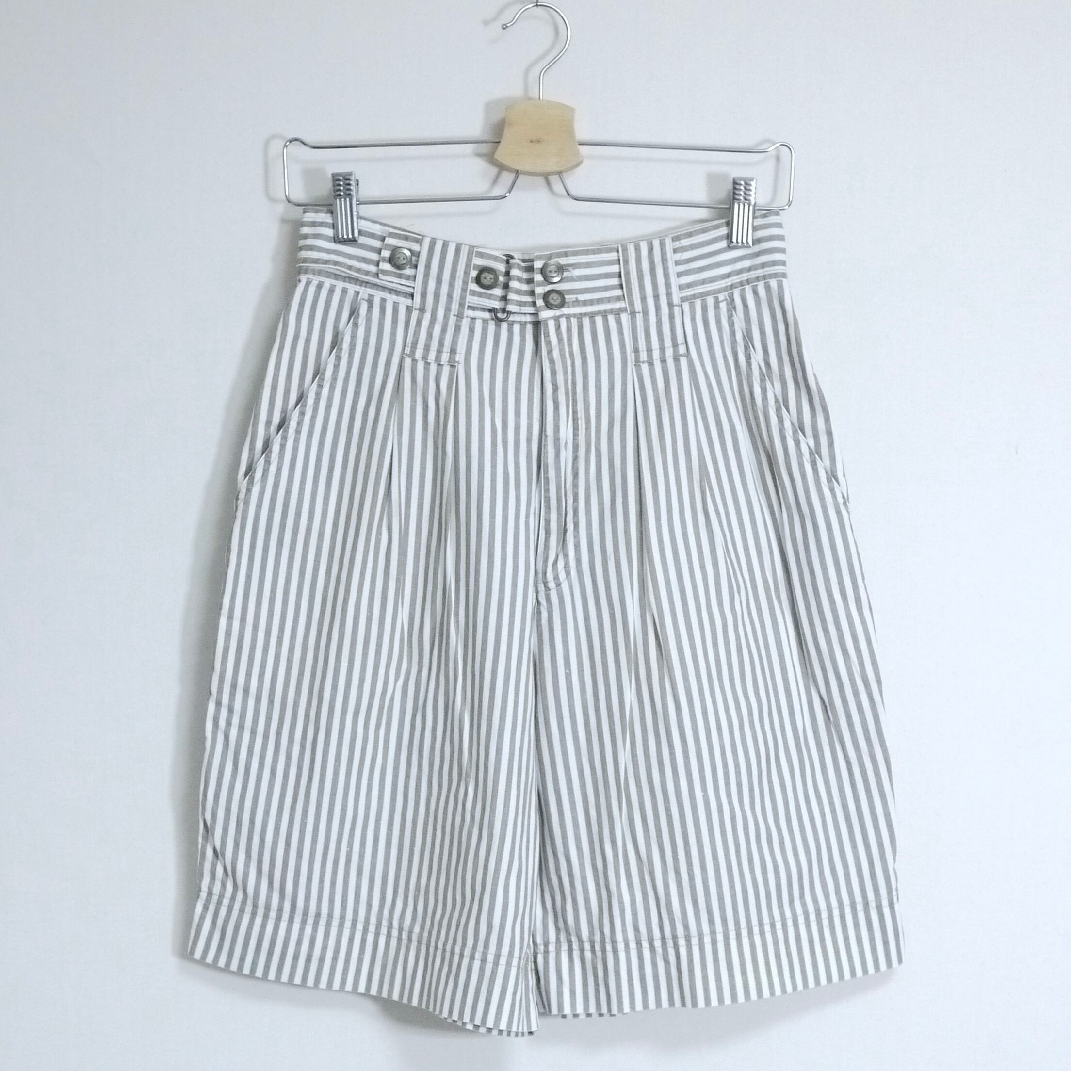 ベージュ×ホワイトのストライプ柄ショーツ。