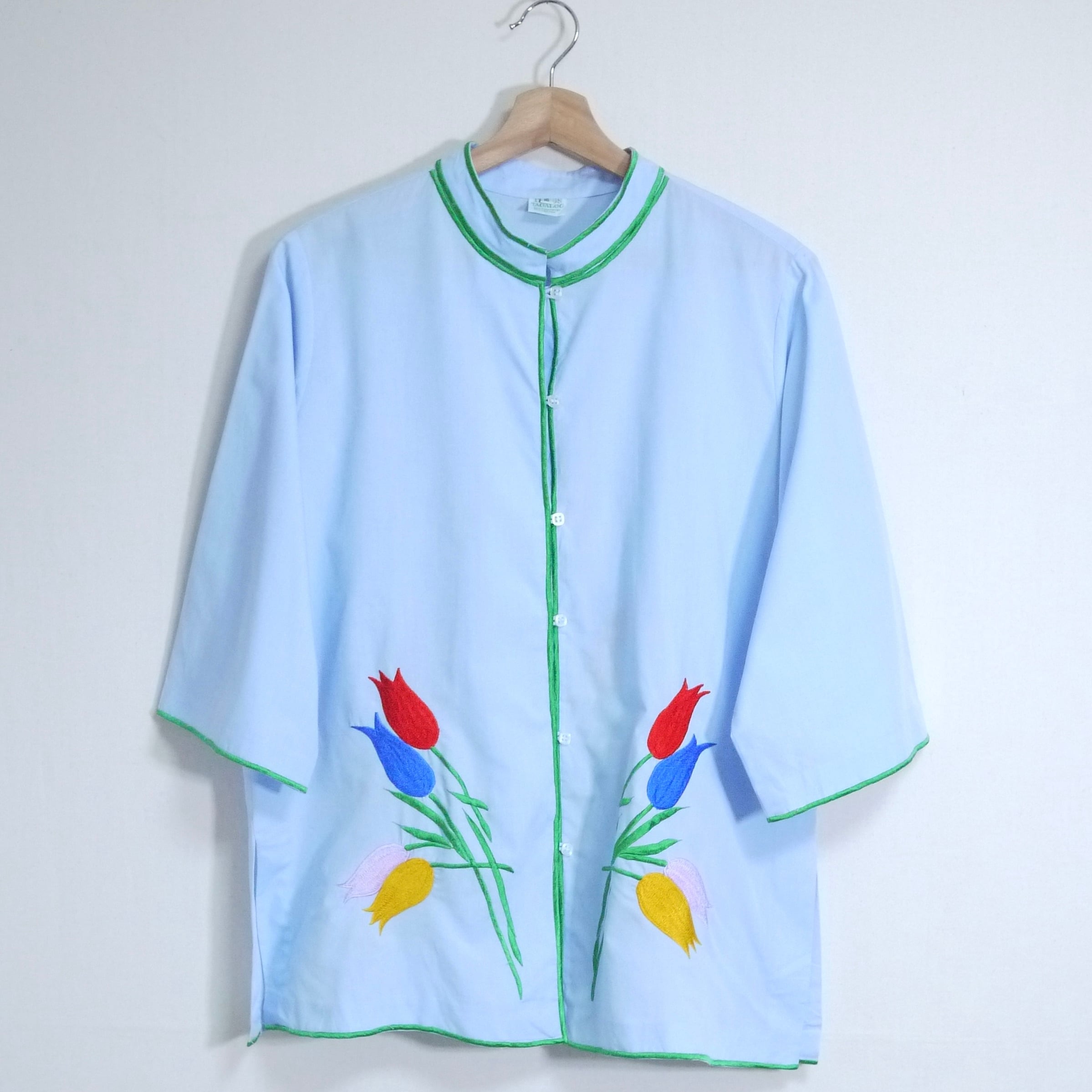 カラフルなチューリップの刺繍デザインが印象的。