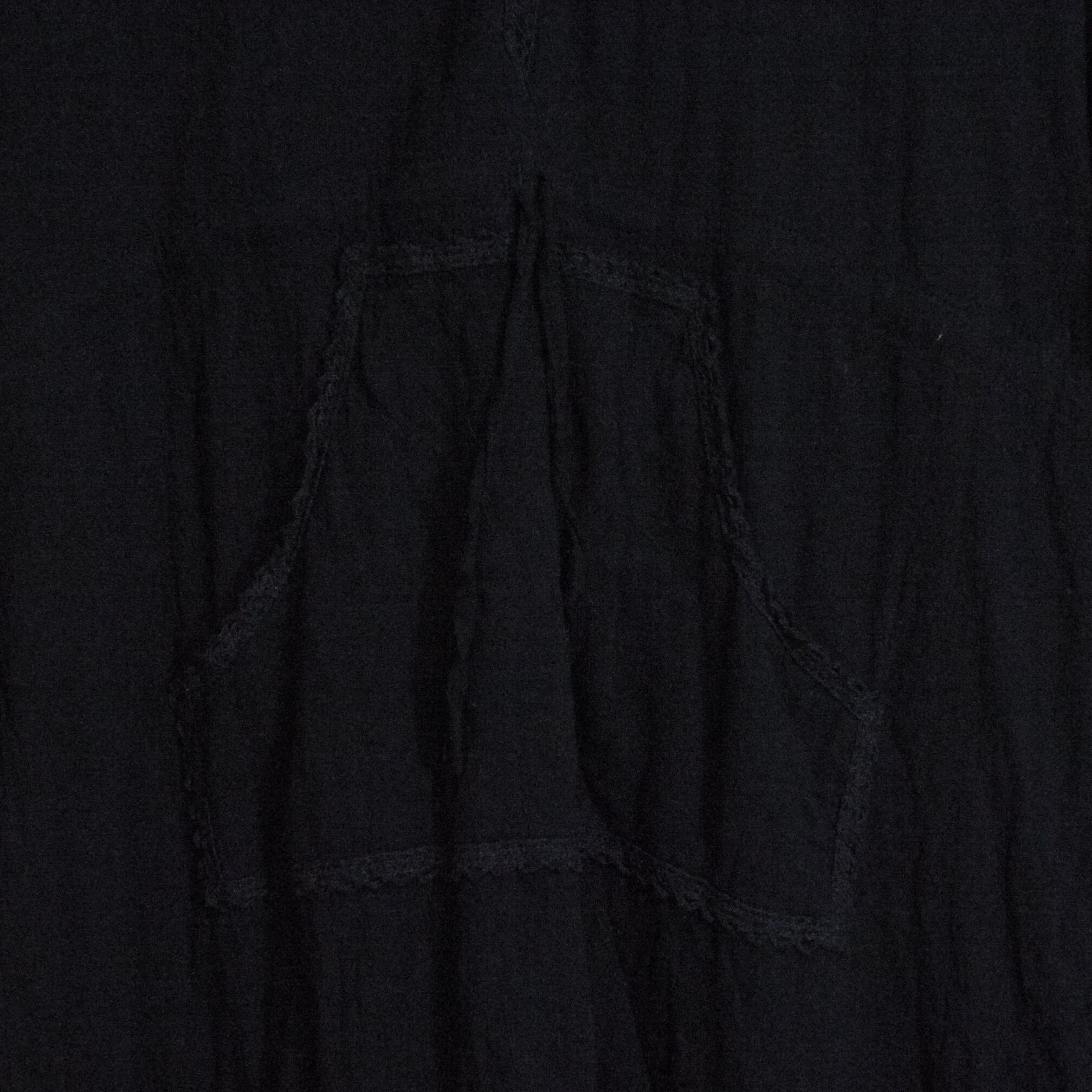 シンプルなデザインながら同色のレースのパイピングやお腹の大きなポケットがアクセントになっています。