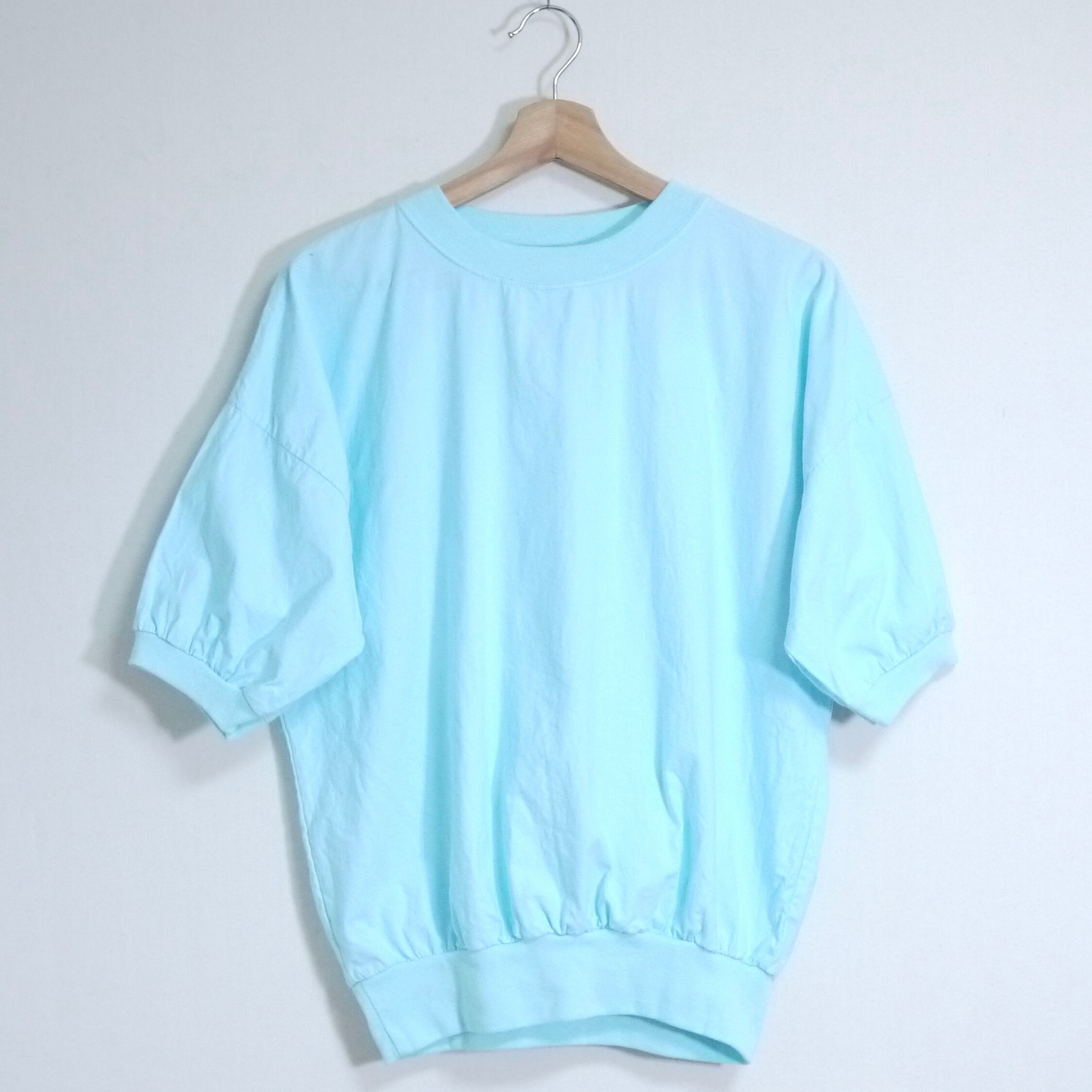 ライトブルーカラーの半袖トップス。