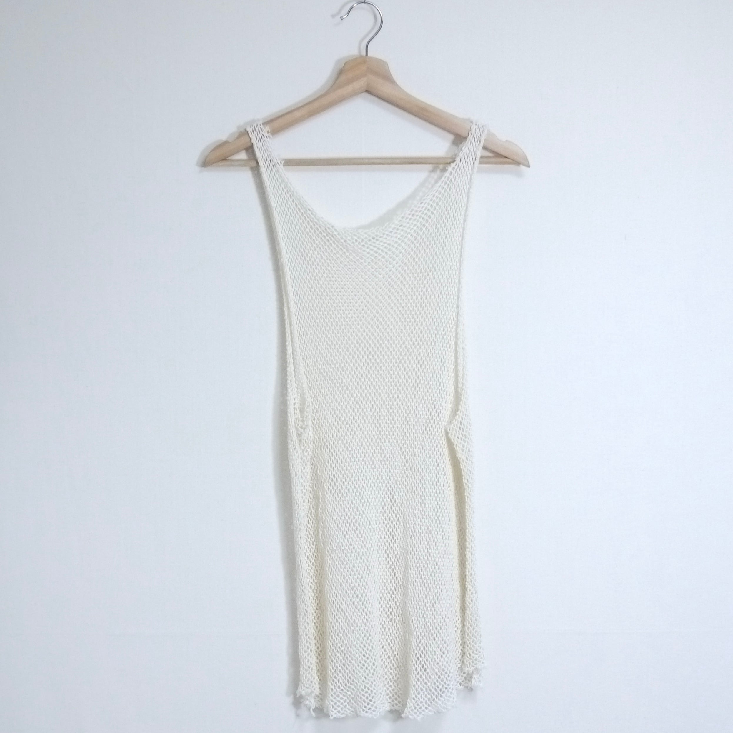 生成りカラーのメッシュデザインのタンクトップ。
