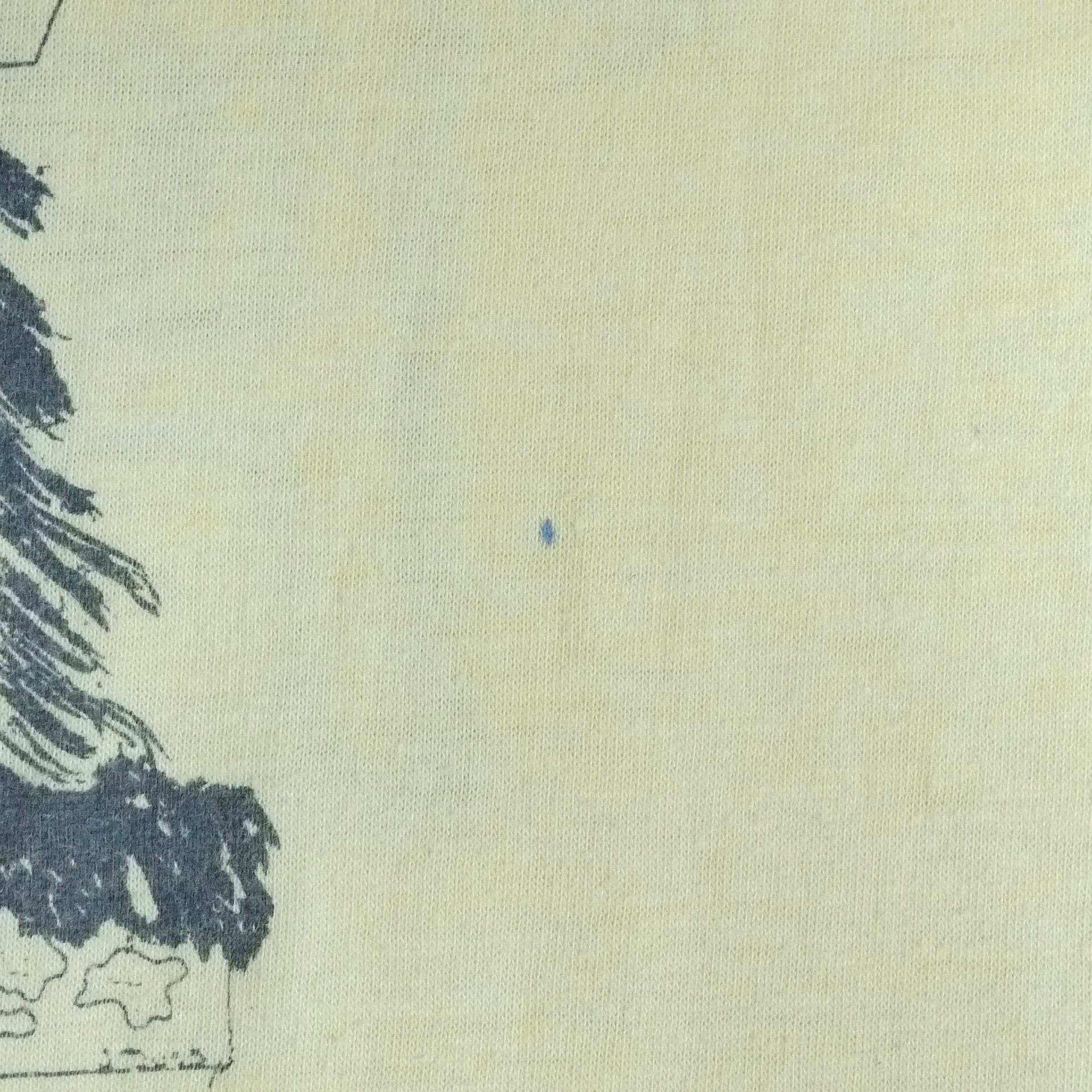 状態は、左袖、プリント付近、右裾付近に小さな汚れ。その他、全体的に経年による使用感が多少ありますが、目立った汚れやダメージはなく着用に問題はありません。