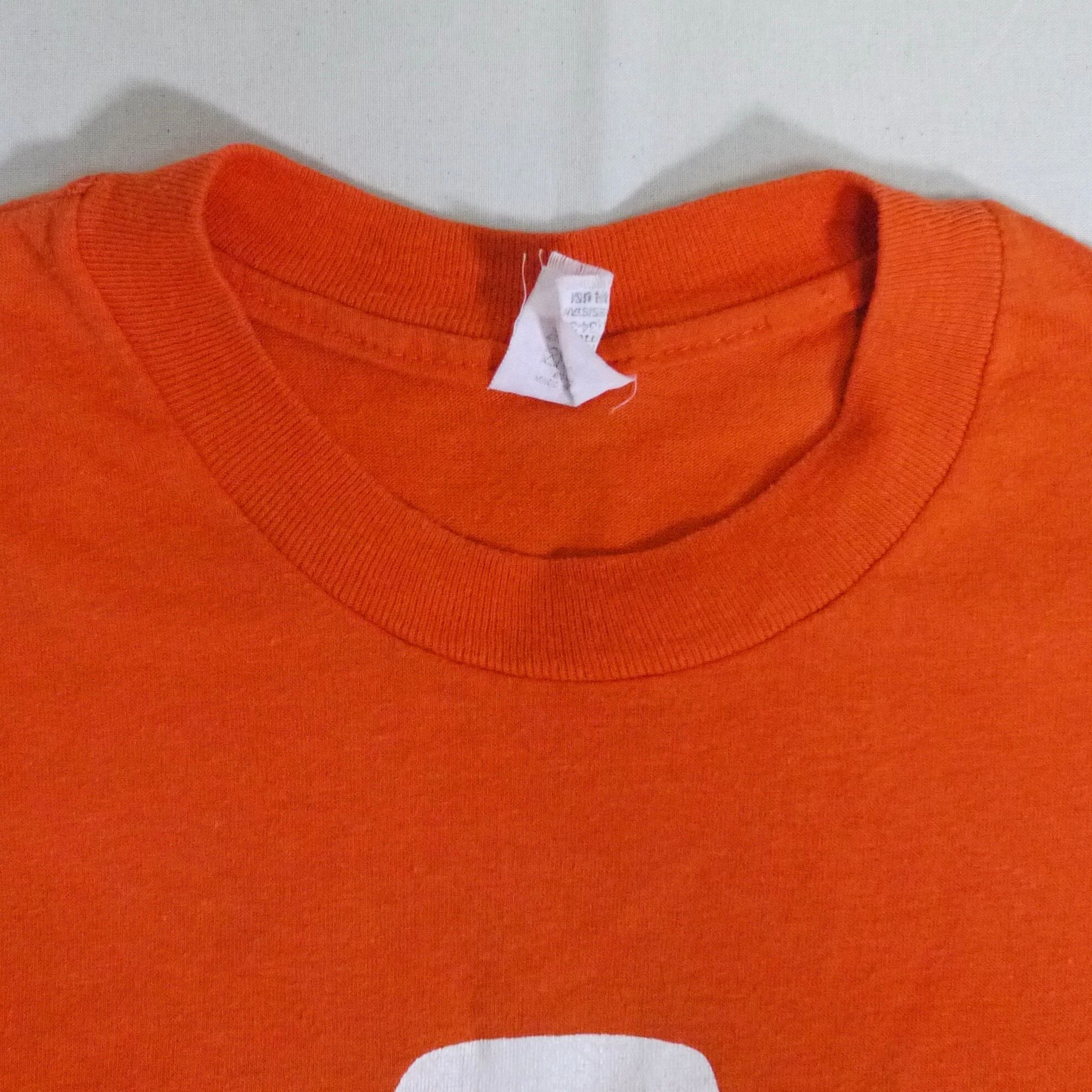 オレンジカラーのTシャツ。