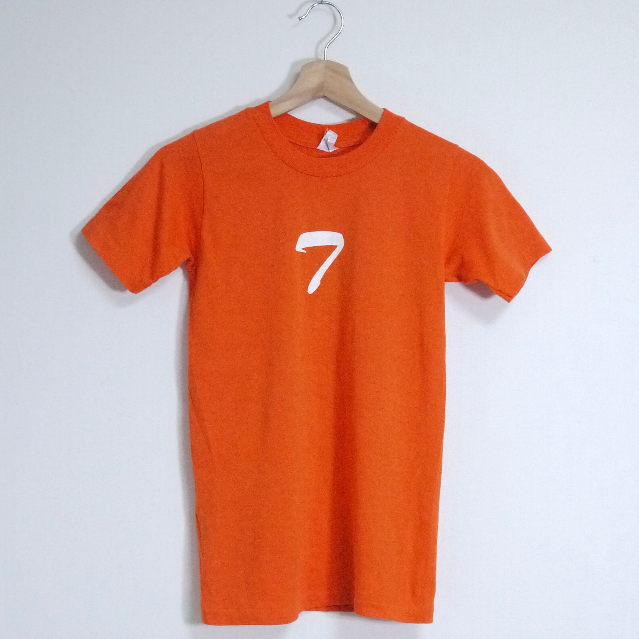 フロントは数字の7にも見える古着らしいグラフィックでバックはナンバープリント。