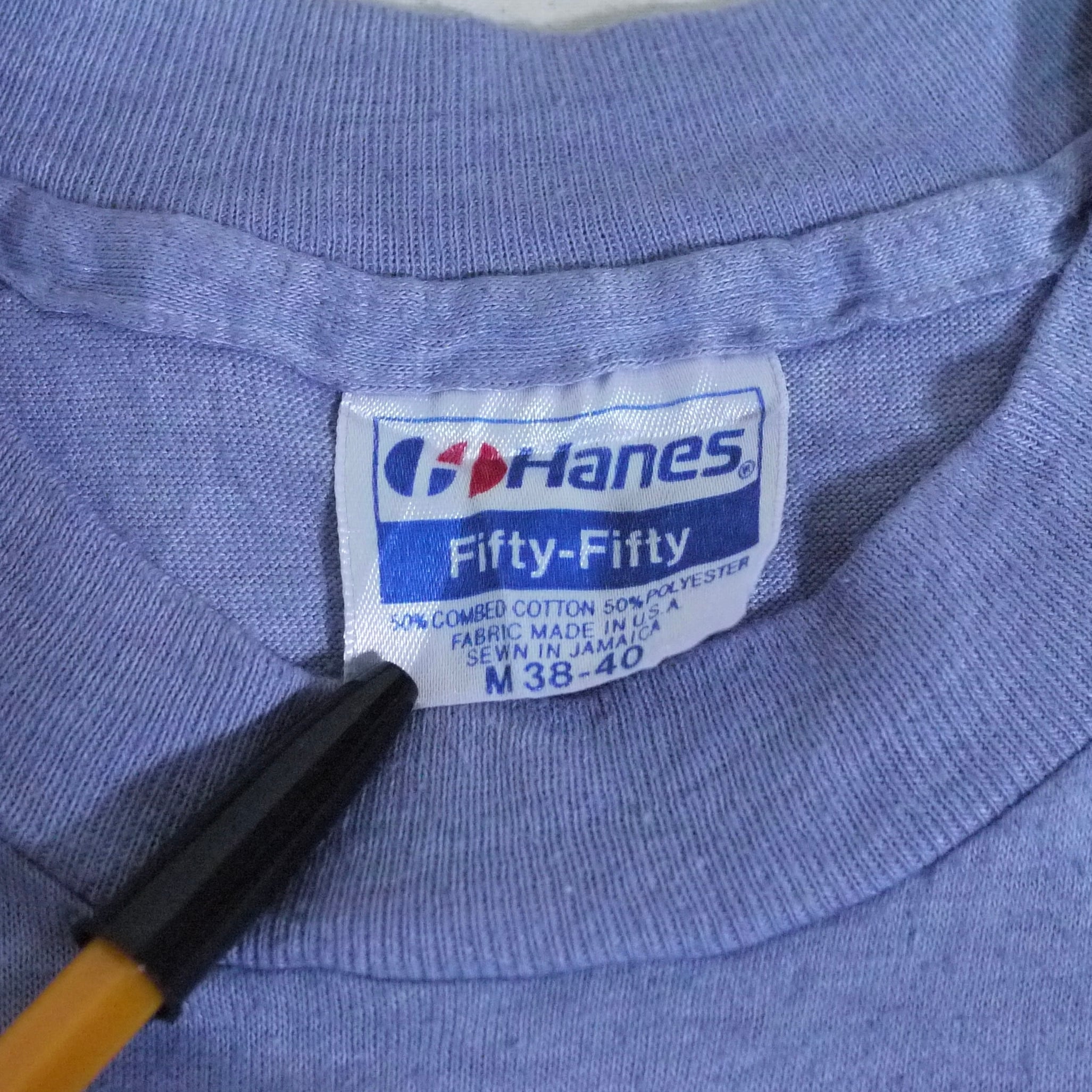 アメリカ製(縫製はジャマイカ)。ポリエステル50%、コットン50%。