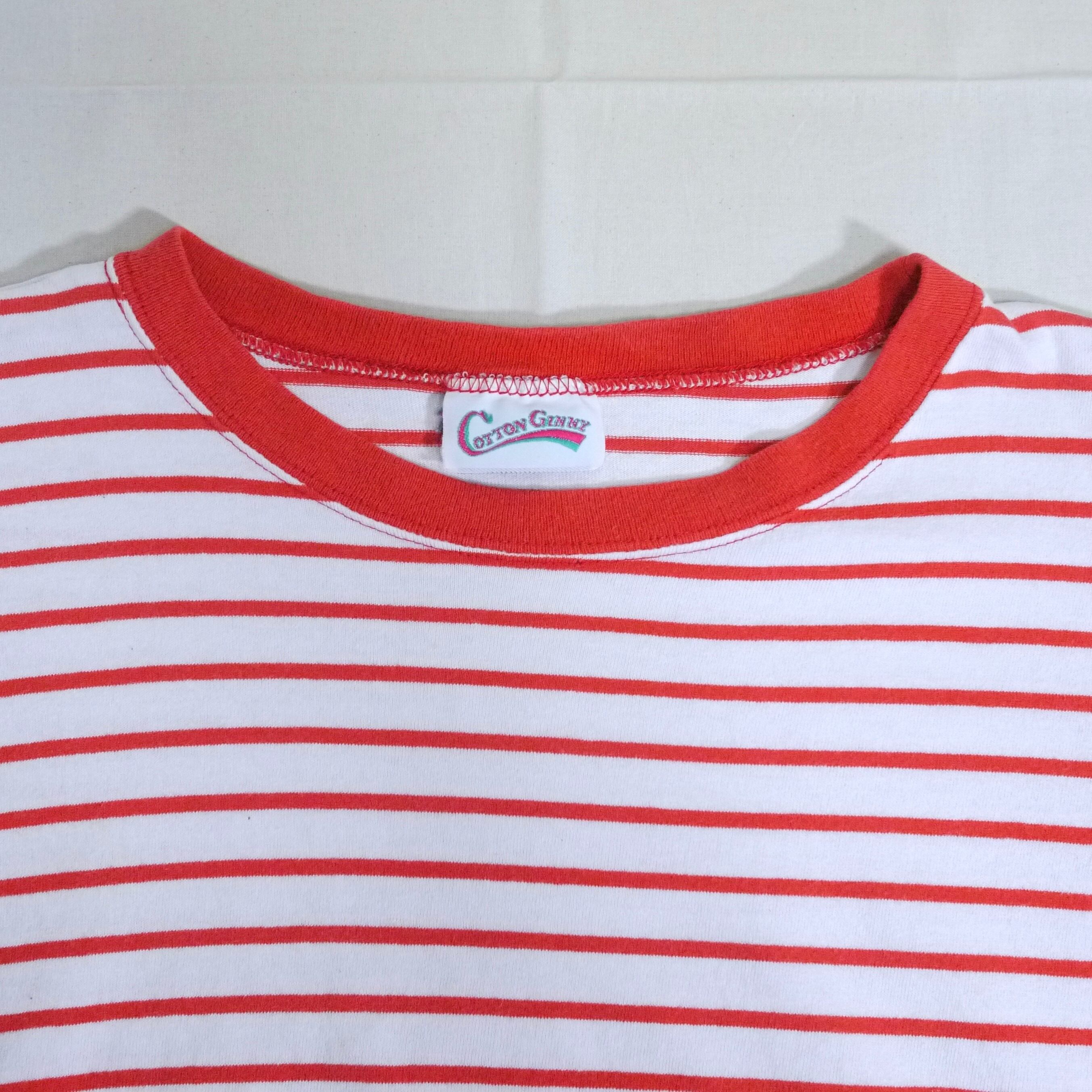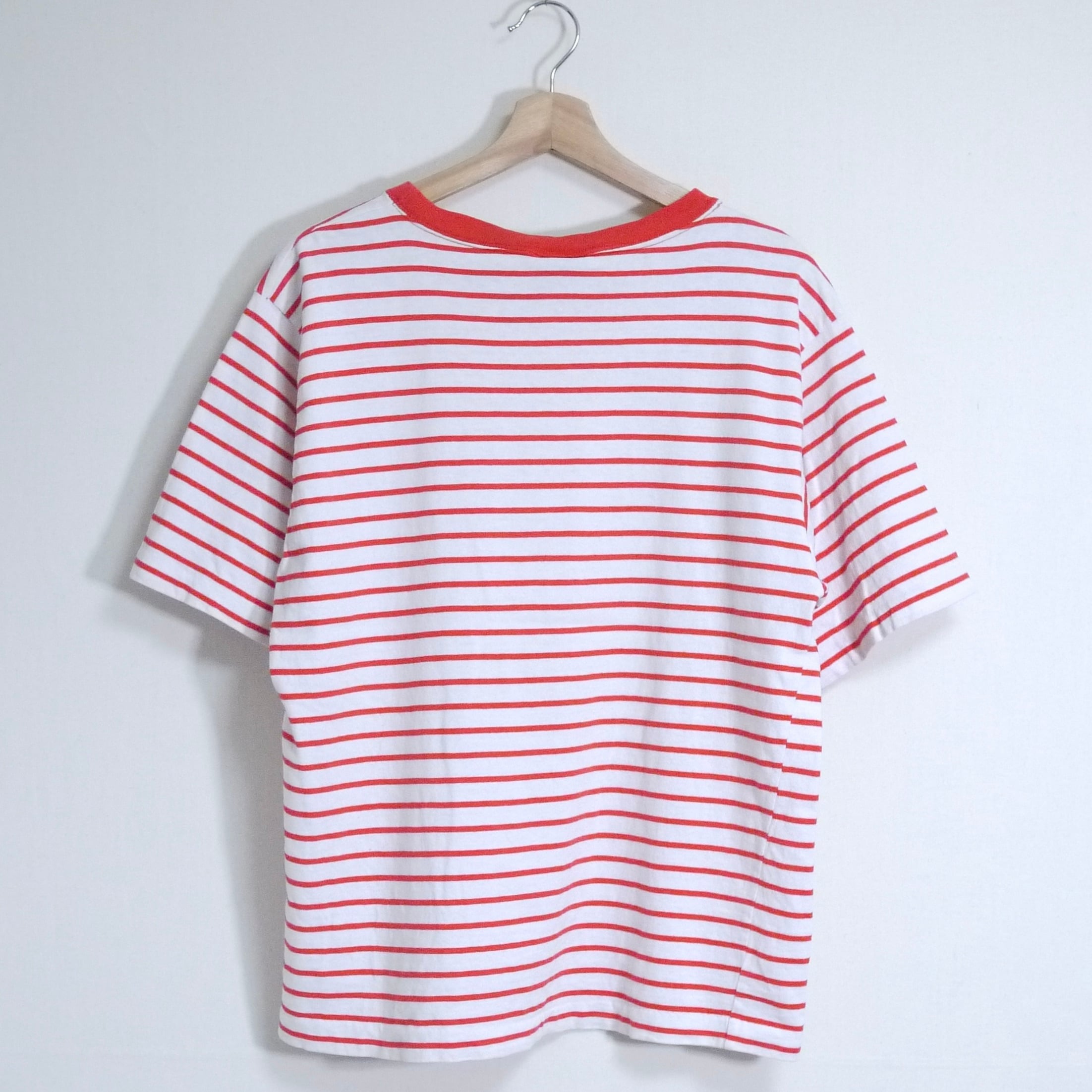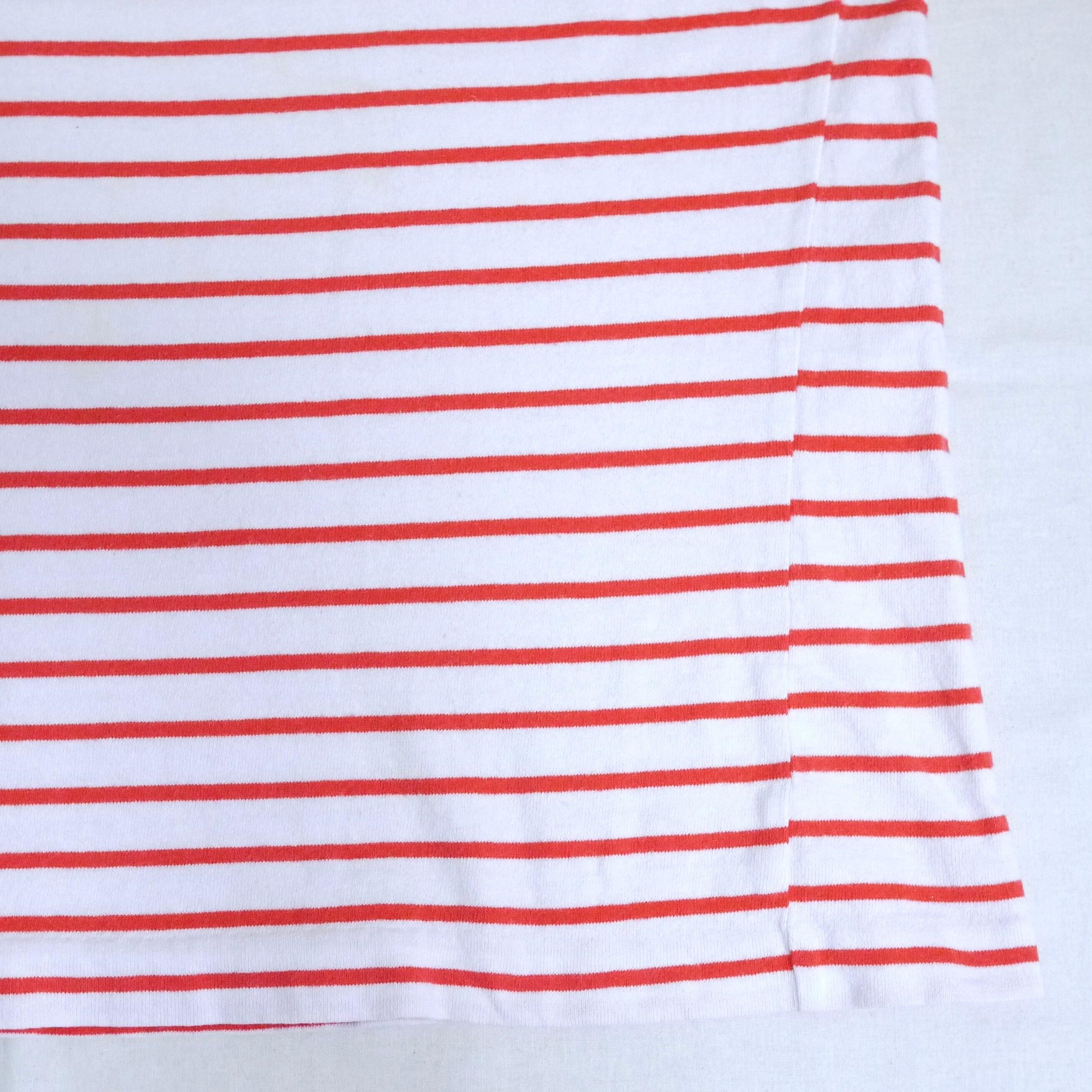 オレンジ×ホワイトのボーダー柄Tシャツ。