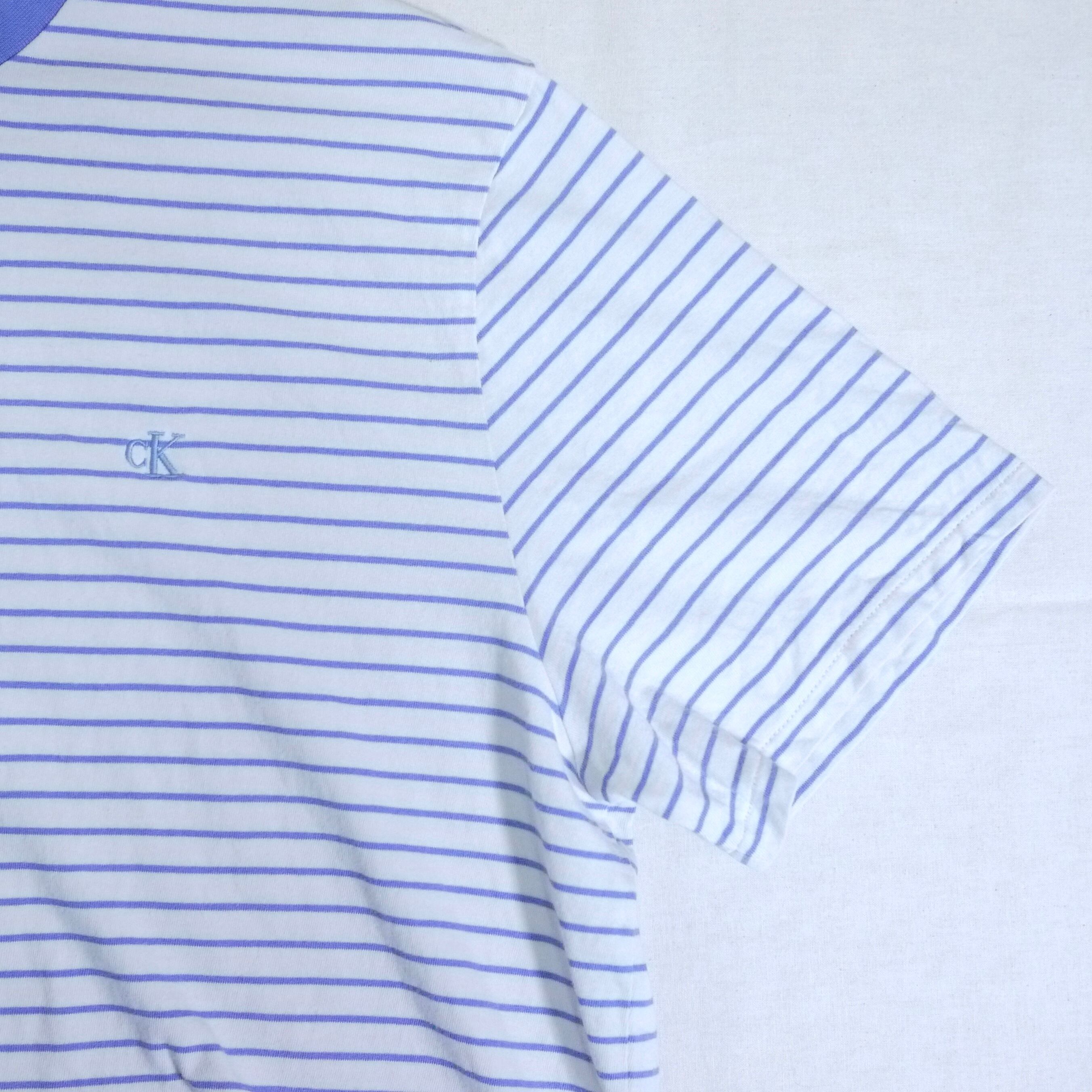 ホワイト×ライトブルーのボーダー柄Tシャツ。