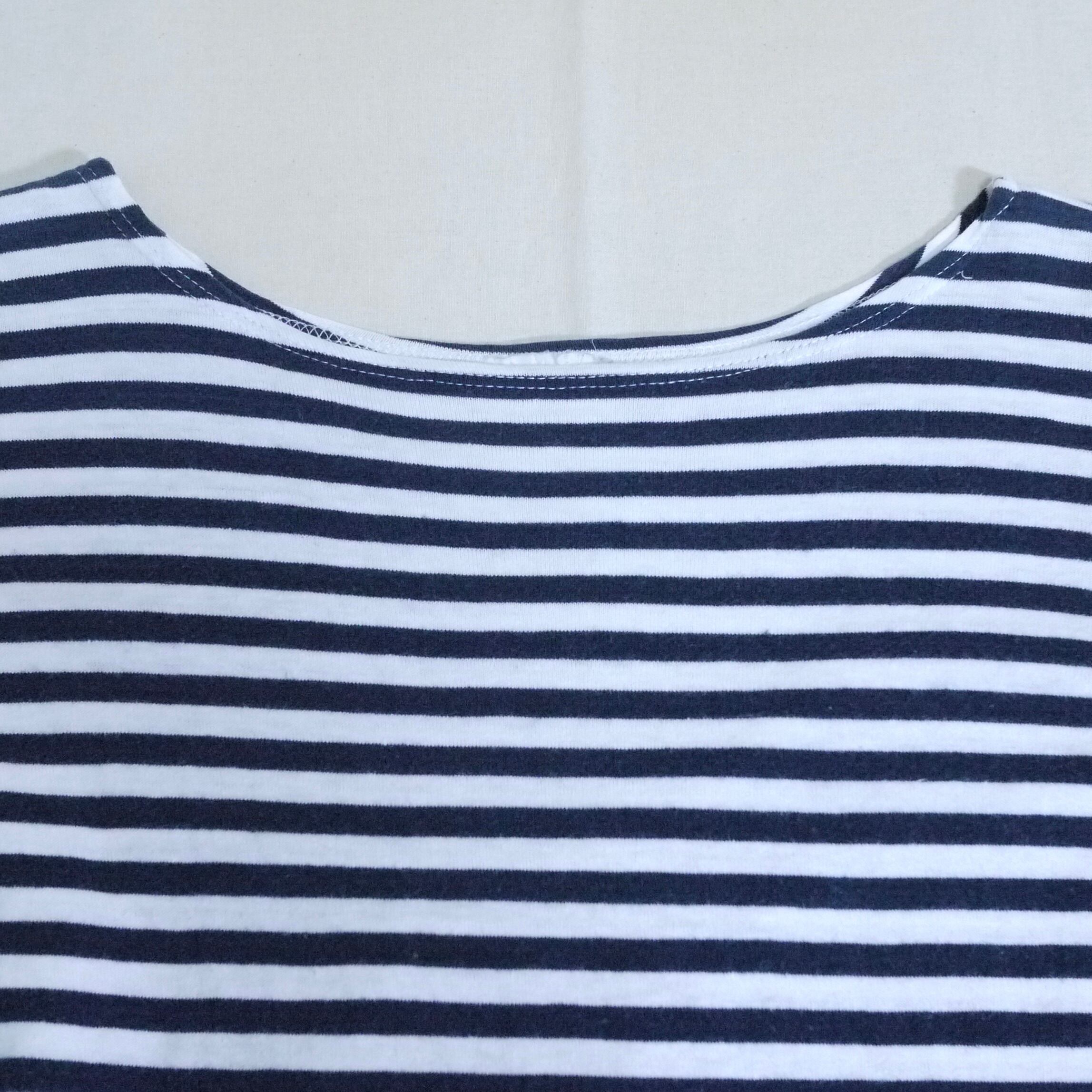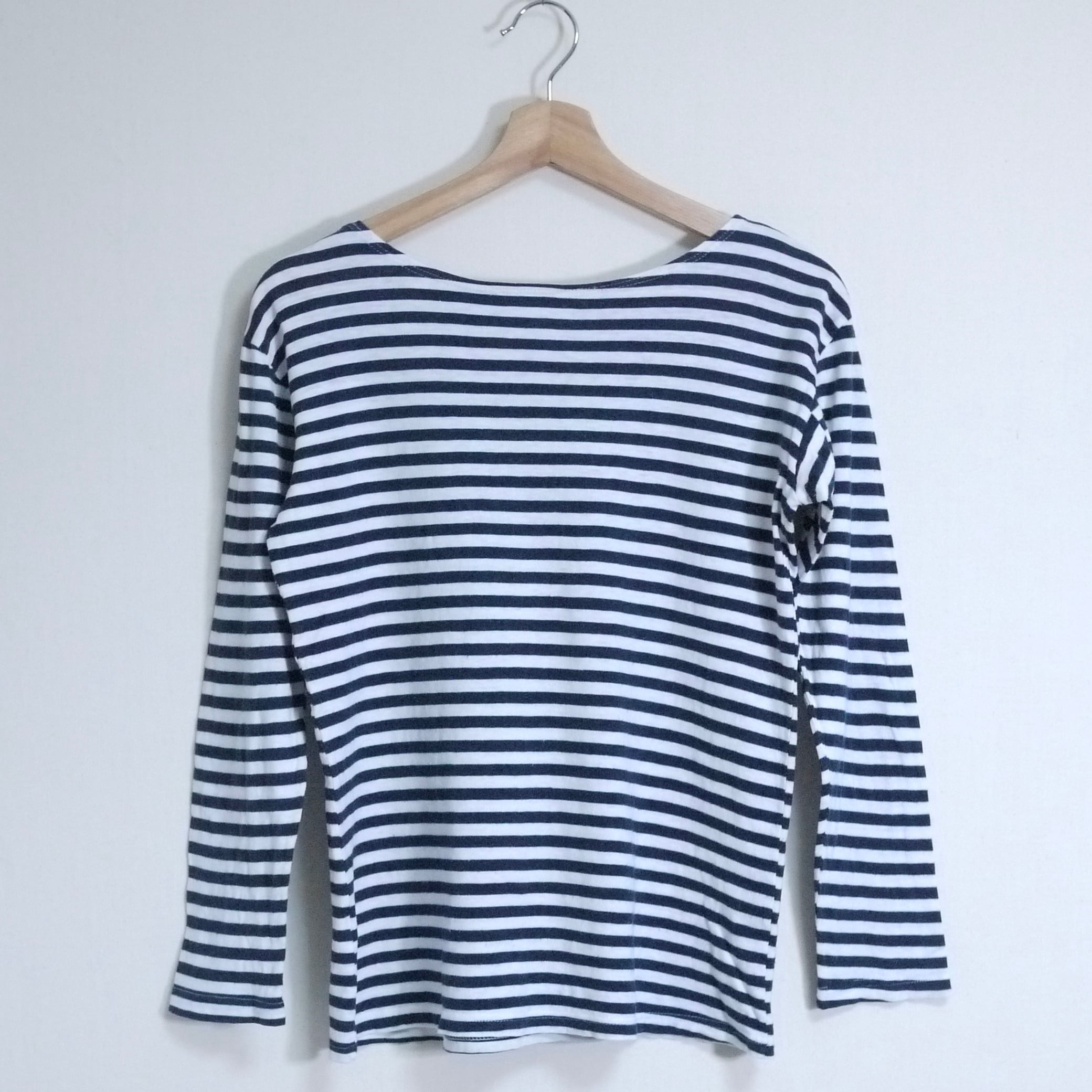 ネイビー×ホワイトのボーダー柄Tシャツ。