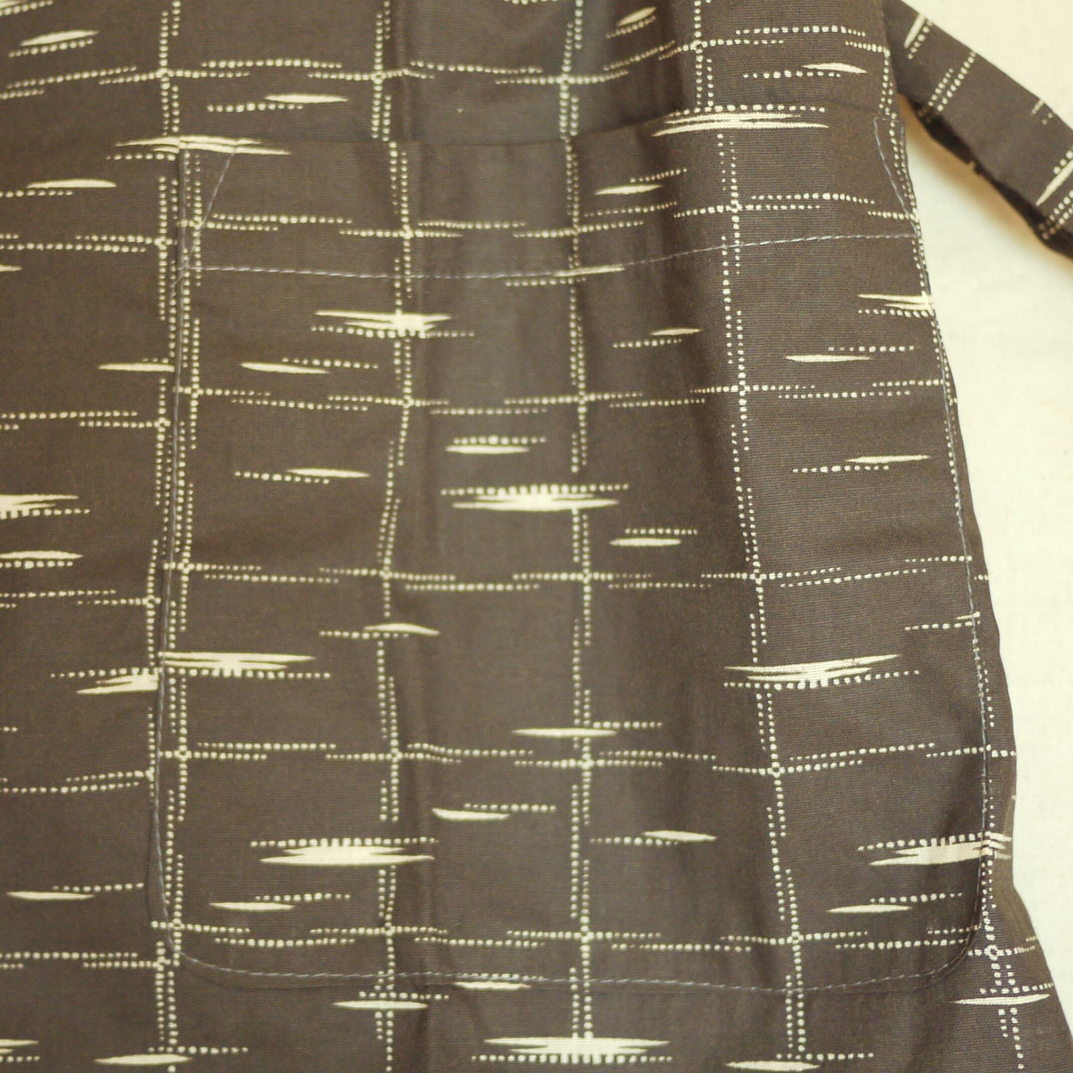 落ち着いたカラー、柄で雰囲気のある総柄ガウン。