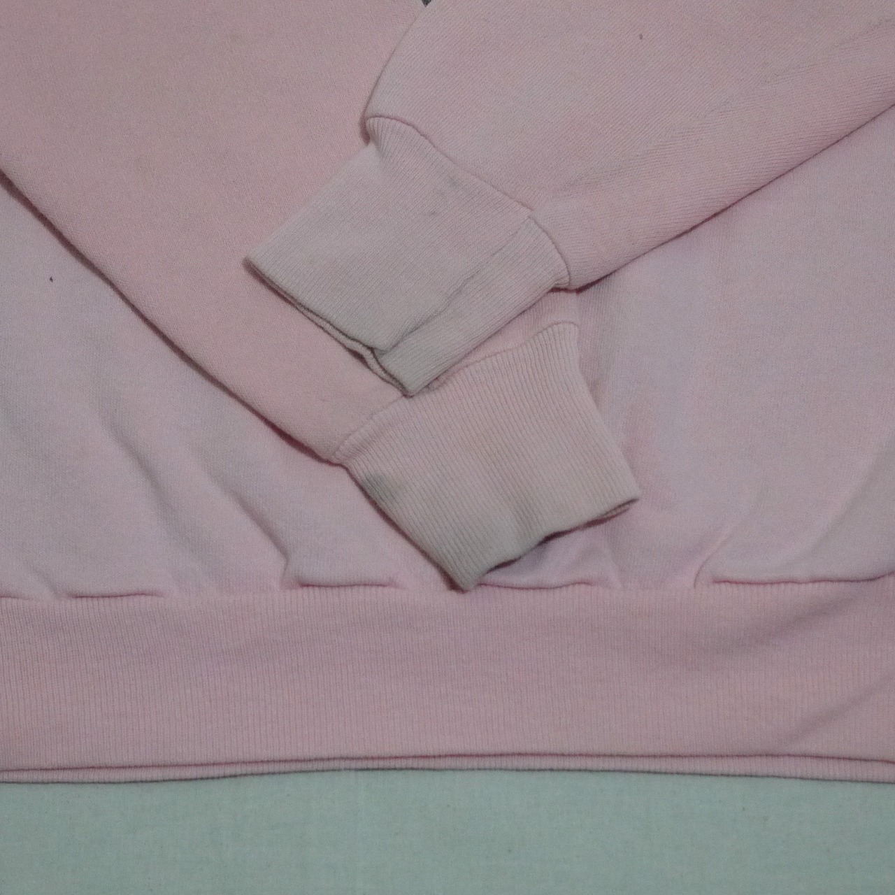 状態は、両袖のリブに使用感からくる汚れ。前身ごろ、両袖に薄っすら汚れ。その他、経年による使用感がありますが、着用に問題はありません。