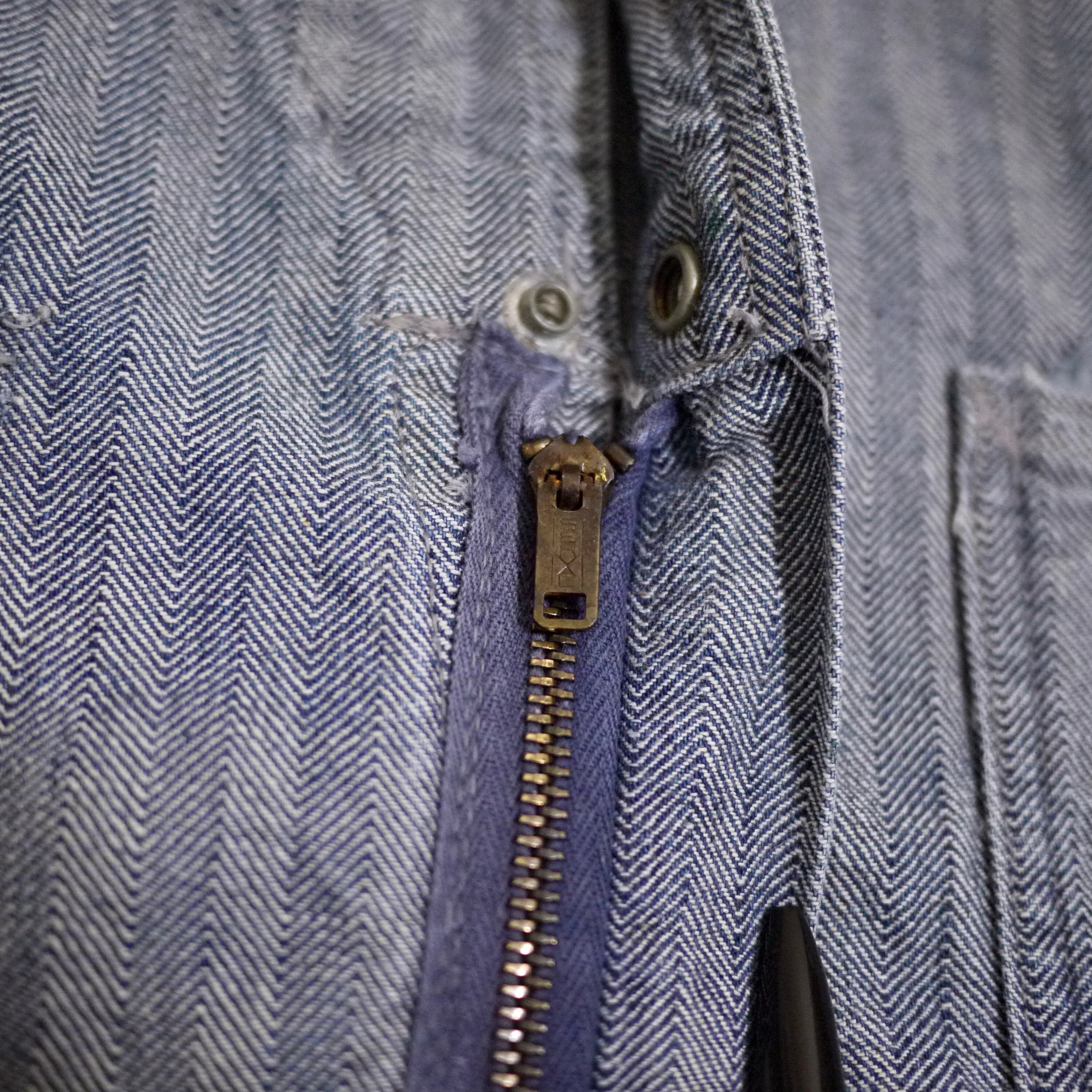 SERVALのダブルジッパー。ボタンはUNION MADE刻印。フロントボタン2つ目のみスナップボタンであとはドーナツボタン。ポケットの脇に貫通ポケットの付くワークウェアのディテール。