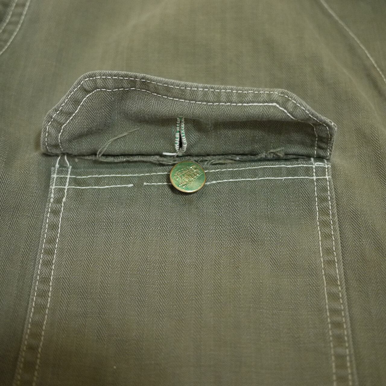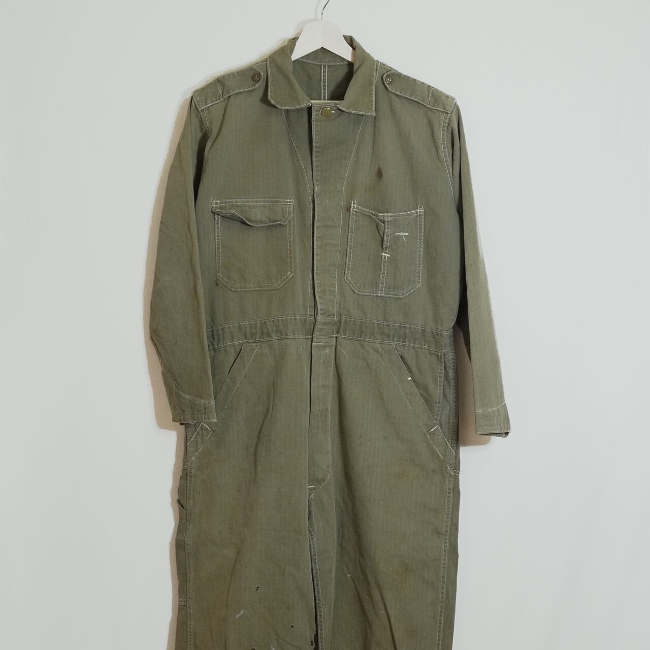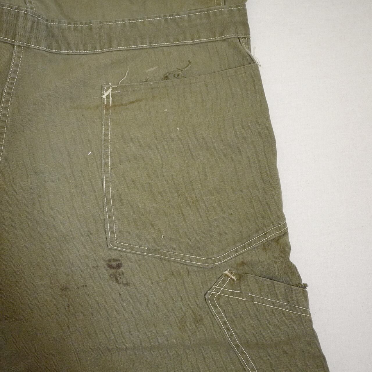 状態は、後ろ側の左ポケットの下辺りにリペア。全体的に所々小さな汚れやダメージ。その他、経年による使用感がありますが、着用に問題はありません。この年代のワークアイテムとしてはとてもコンディションは良いかと思います。