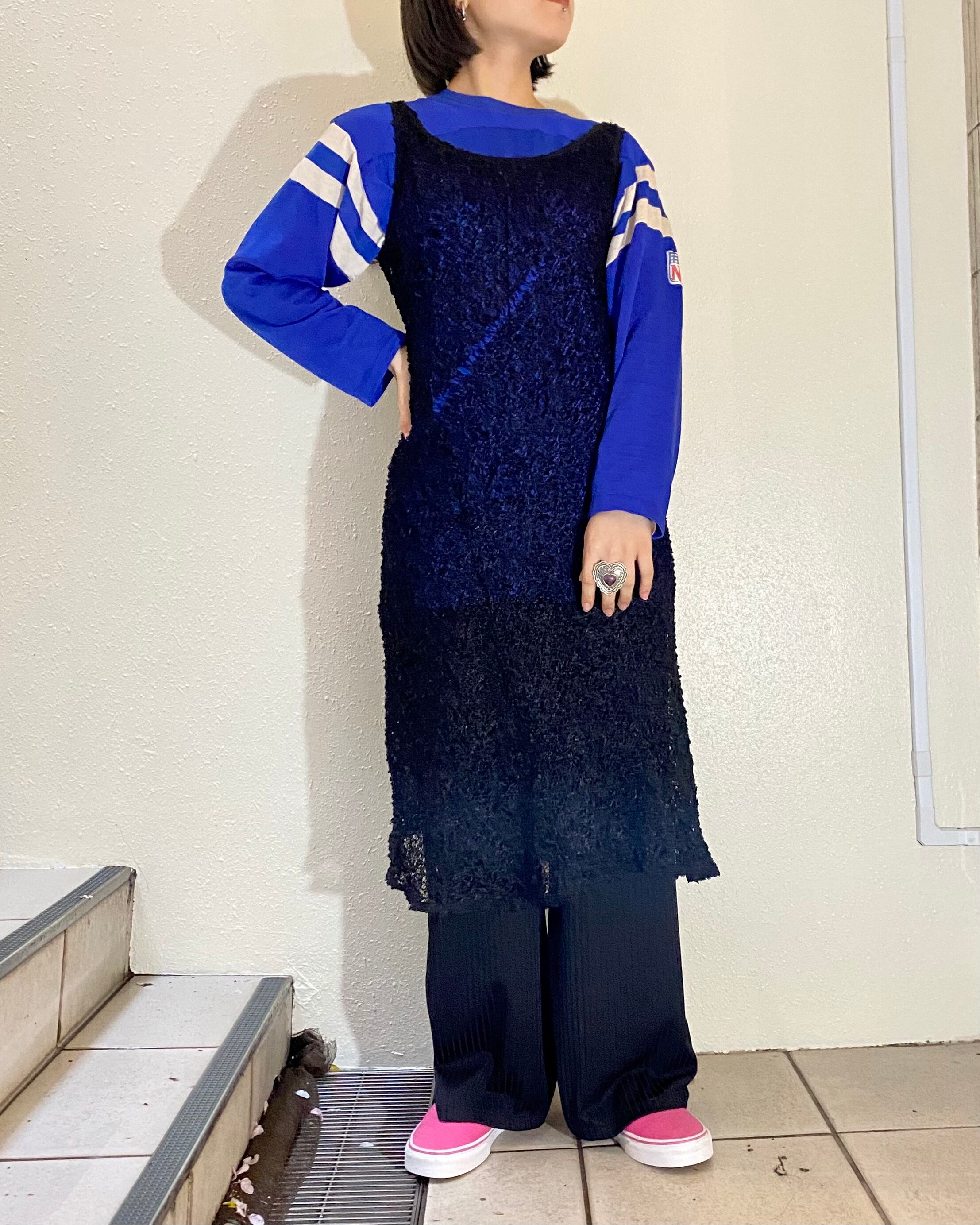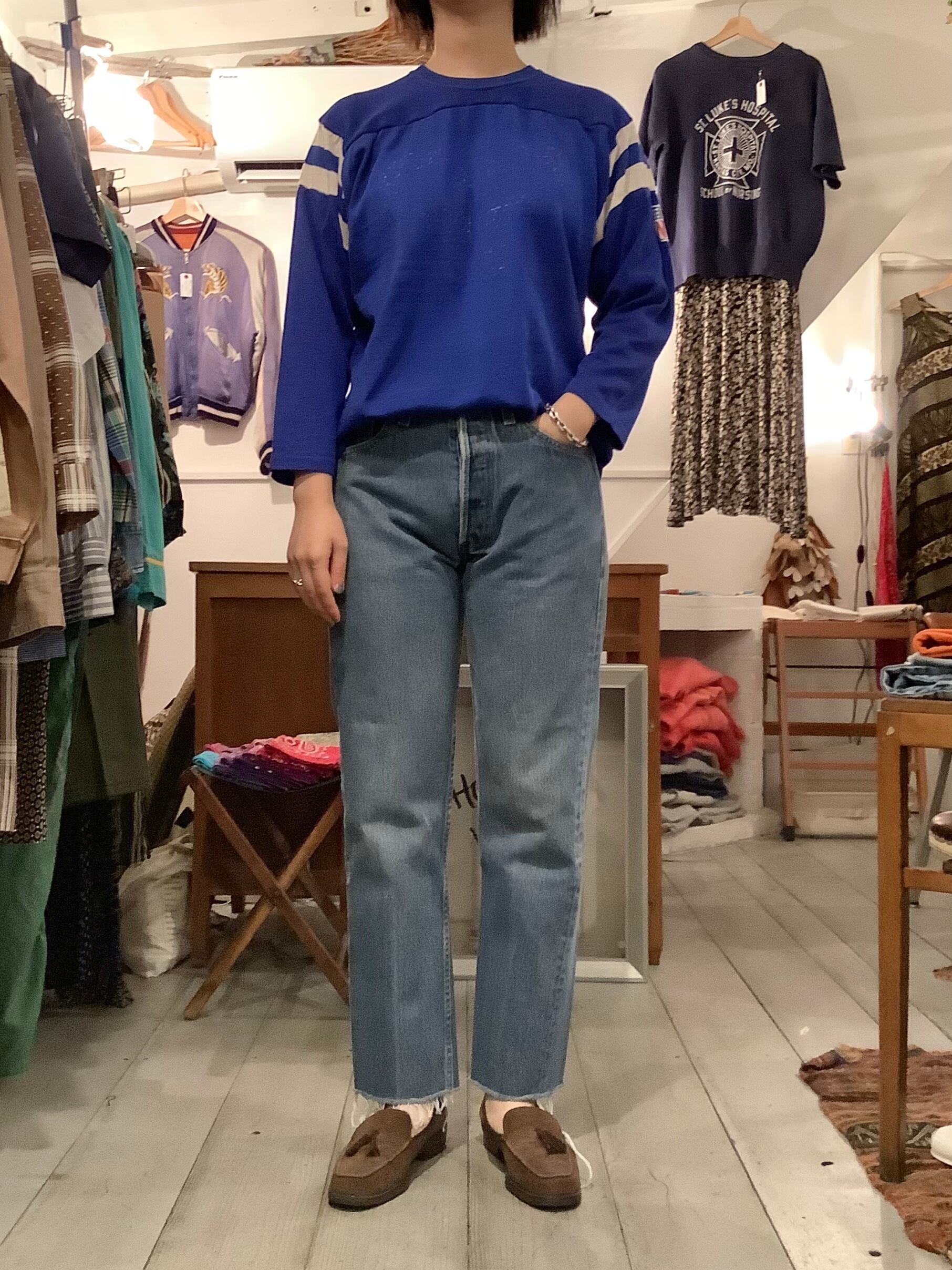 ブルーのボディに人気の袖ラインが入った雰囲気のあるアイテム。