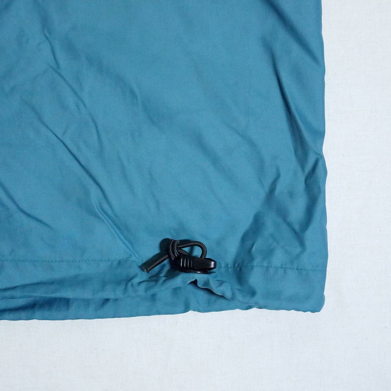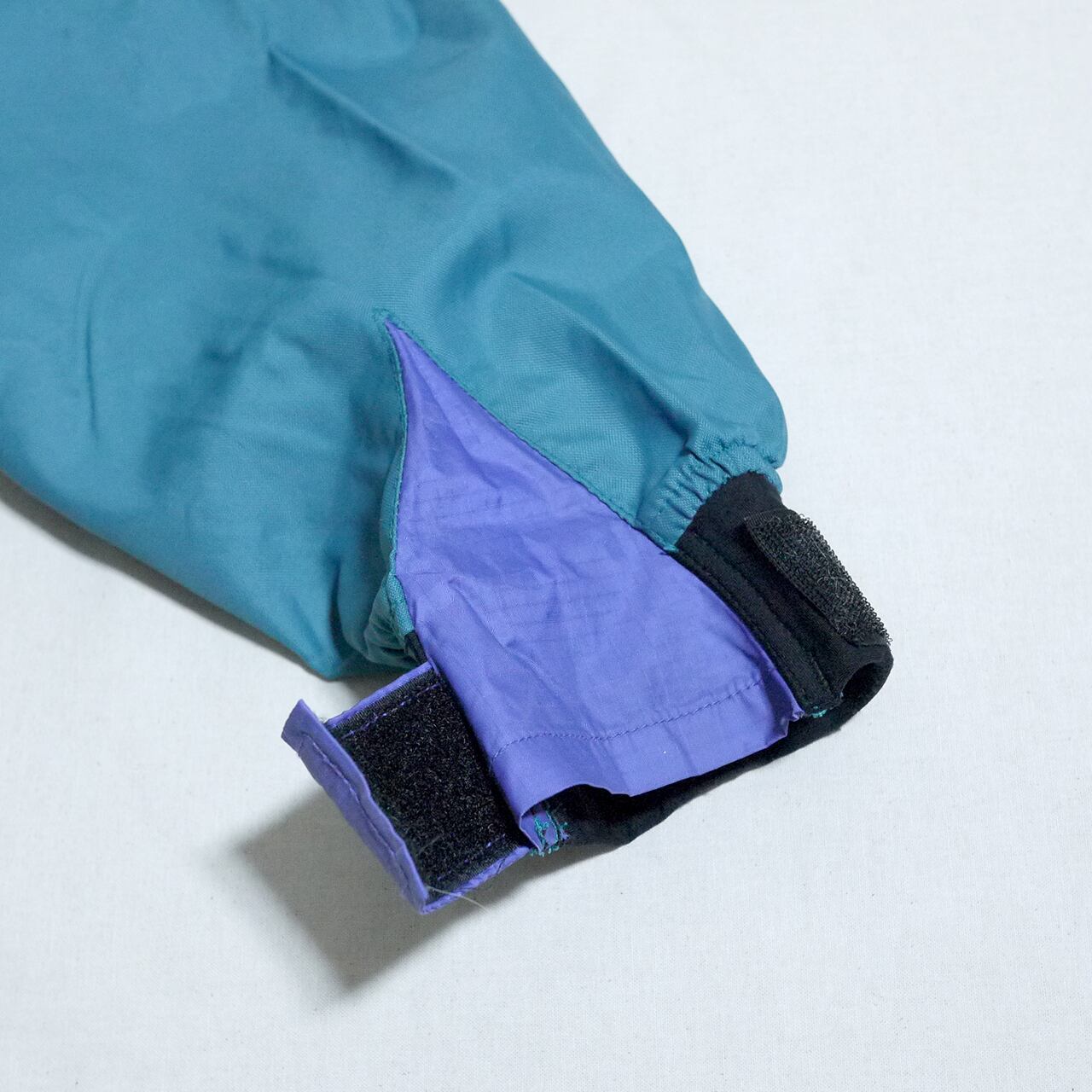 ネックと袖口は水の浸入を防ぐウェットスーツ素材でベルクロ留め。裾にドローコードも付きます。