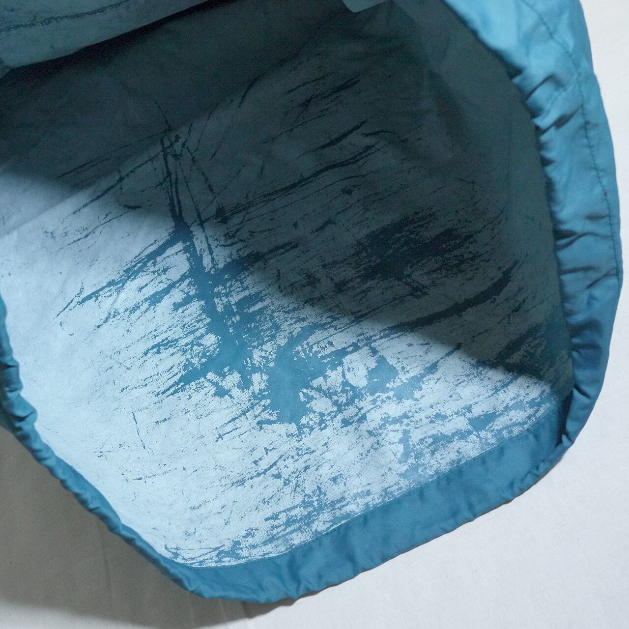 状態は、内側にナイロンの劣化による剥離があります。現状ではパラパラ落ちてくることはなく、洗濯後も大きく剥離が進むこともありませんでした。ナイロン素材の宿命ですので、ご理解のある方にお願いします。その他、全体的に経年による使用感はありますが、目立ったダメージや汚れはなく着用に問題はありません。