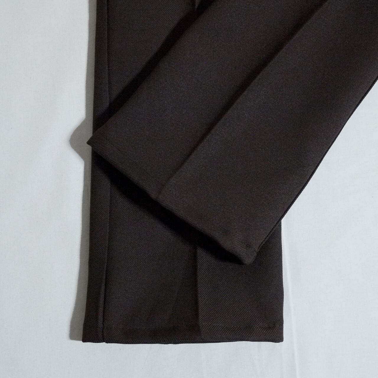 センタープレス入りのドレッシーな雰囲気ながら、着用や洗濯を重ねてもシワになりにくい素材感も魅力のひとつ。