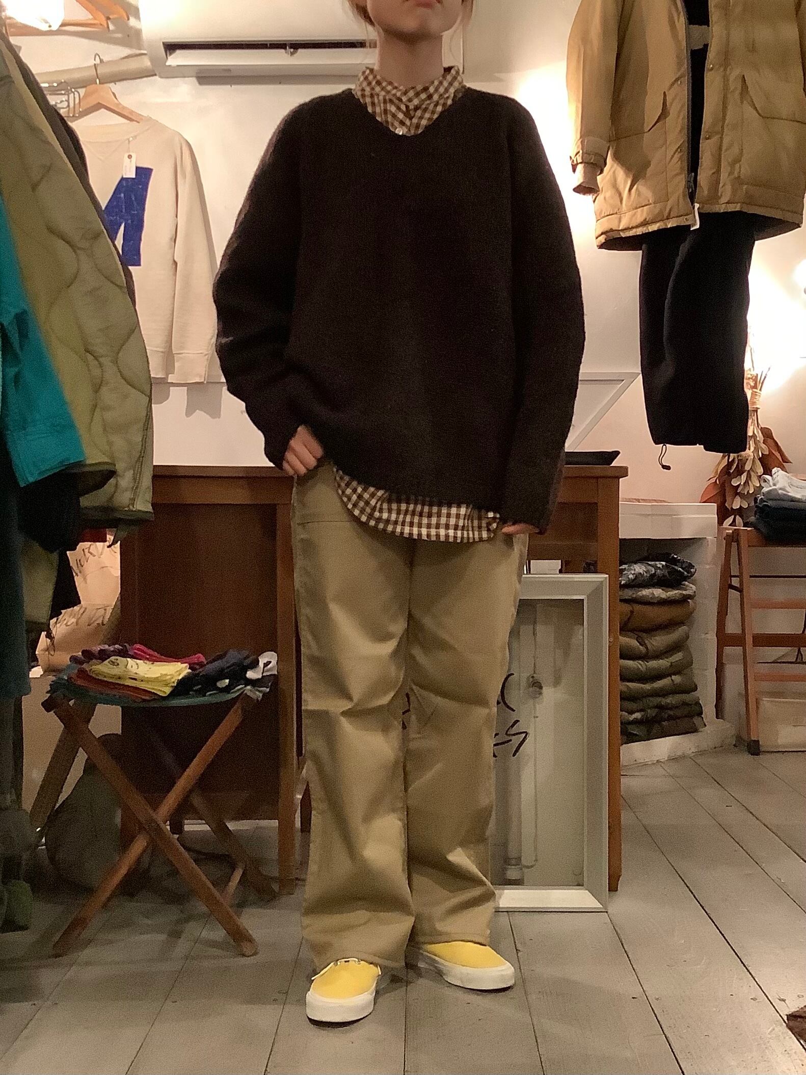 薄手の生地感でゆったりとしたシルエットなので中にタートルネックなどのレイヤードも可能で季節感のあるカラーがこれからの季節にオススメ。