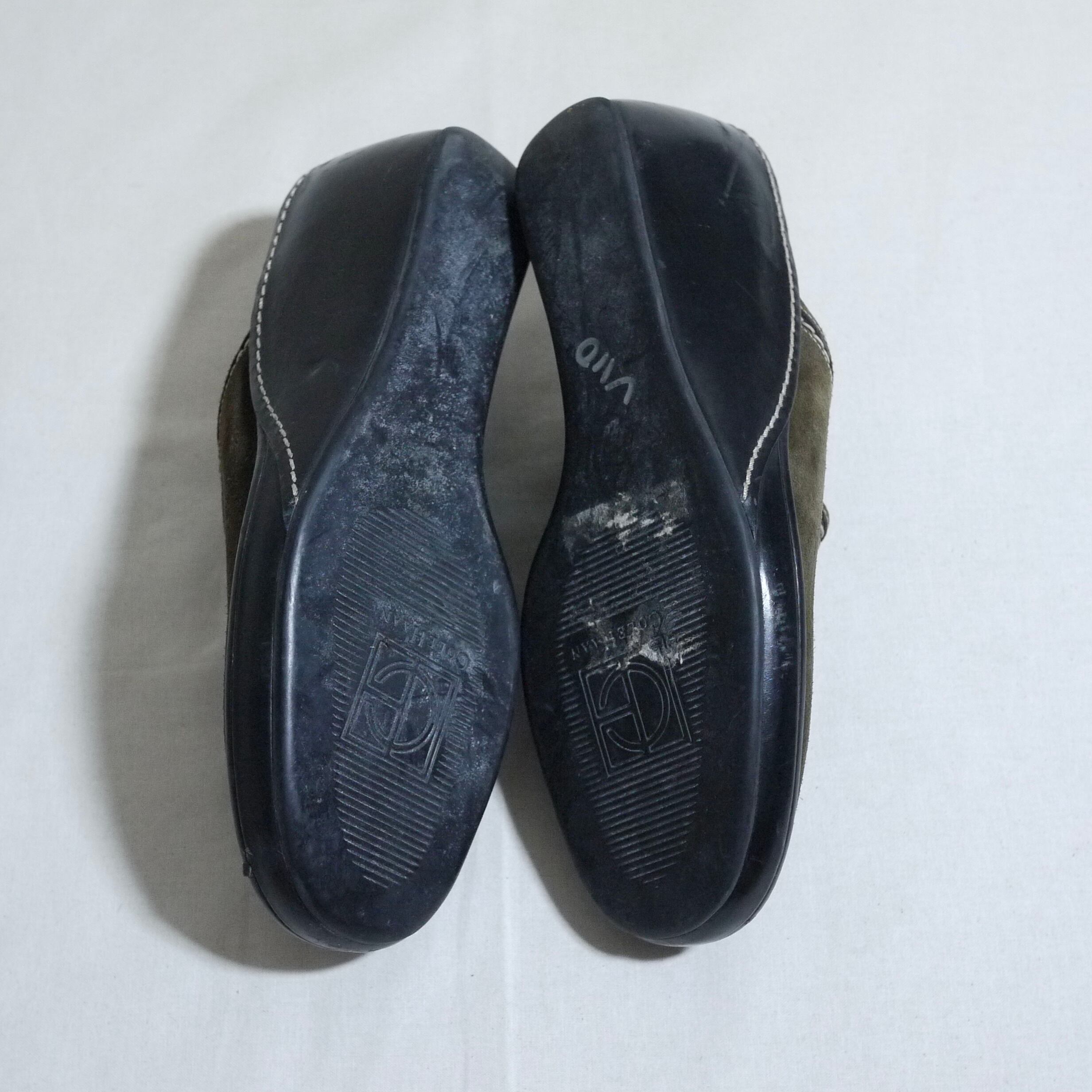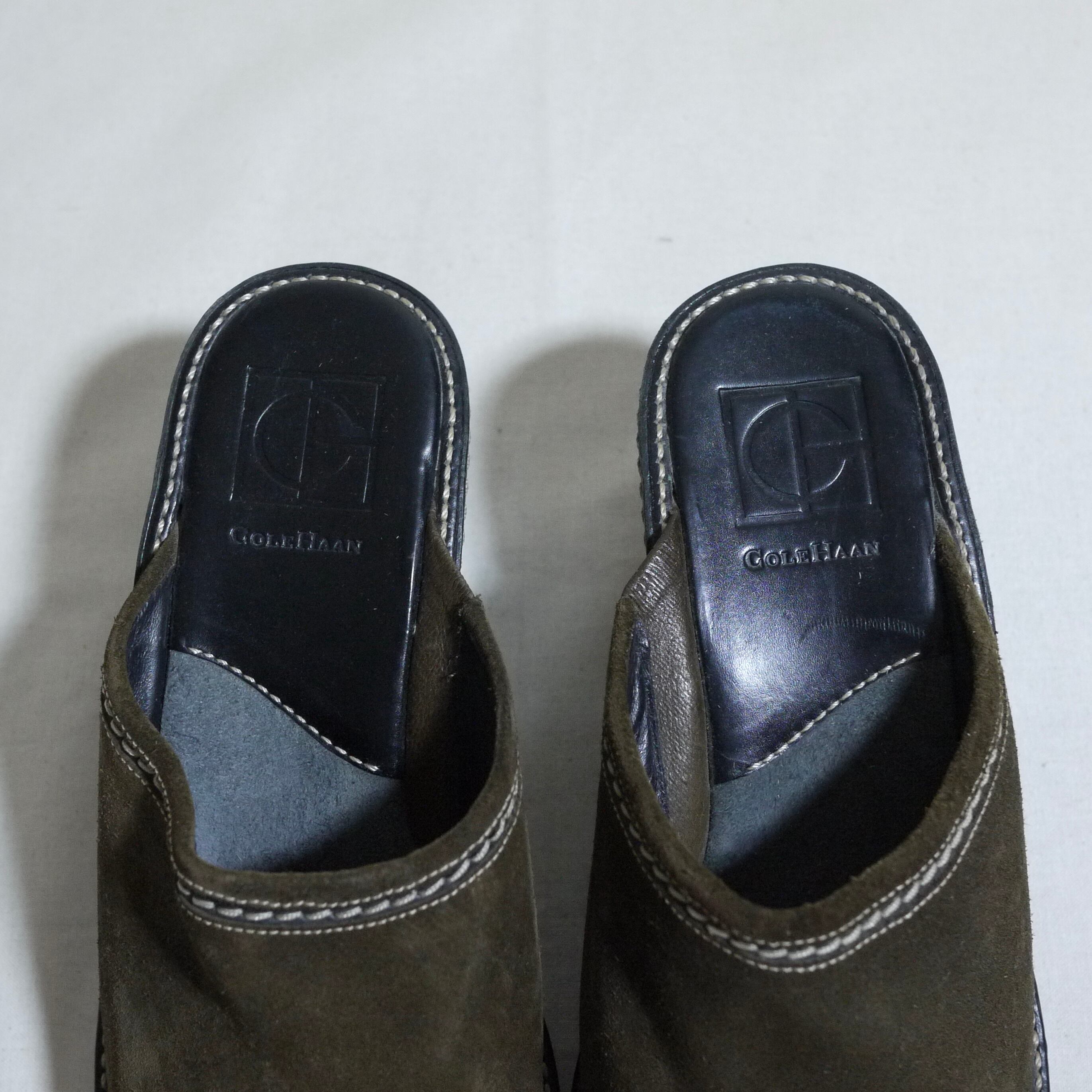 落ち着いたオリーブカラーとスエードの素材感がマッチしたサンダル。