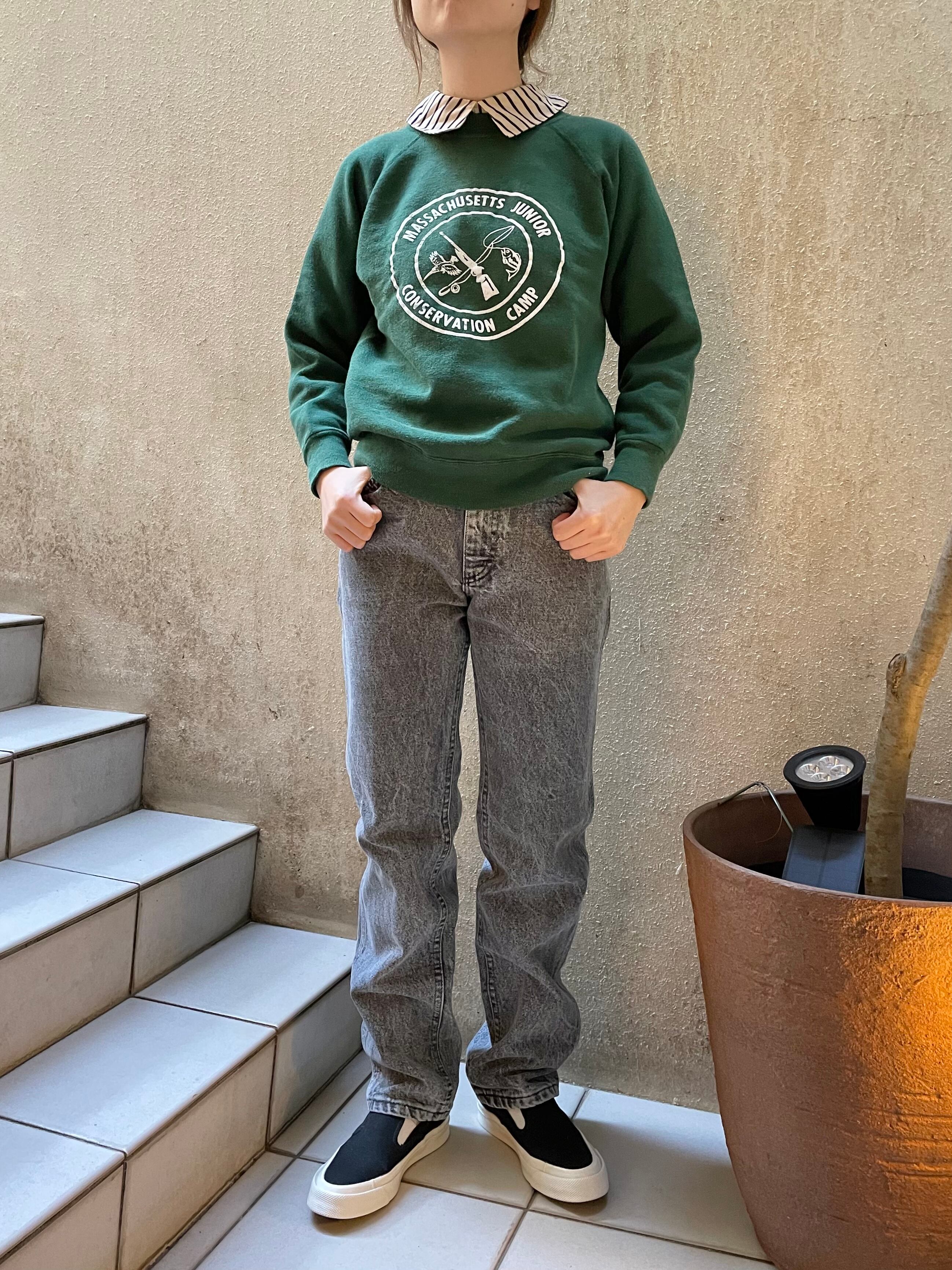 ブラックカラーが色落ちしていて雰囲気のあるデニムパンツ。