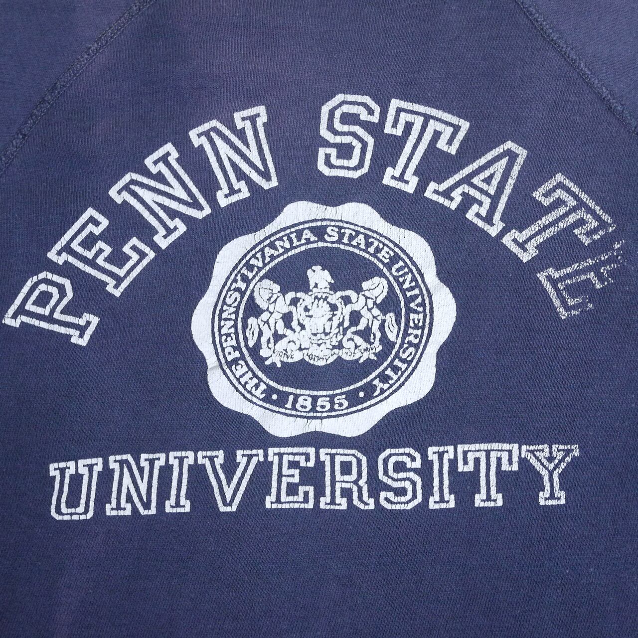 ネイビーが色褪せたナス紺ボディにカレッジプリント。