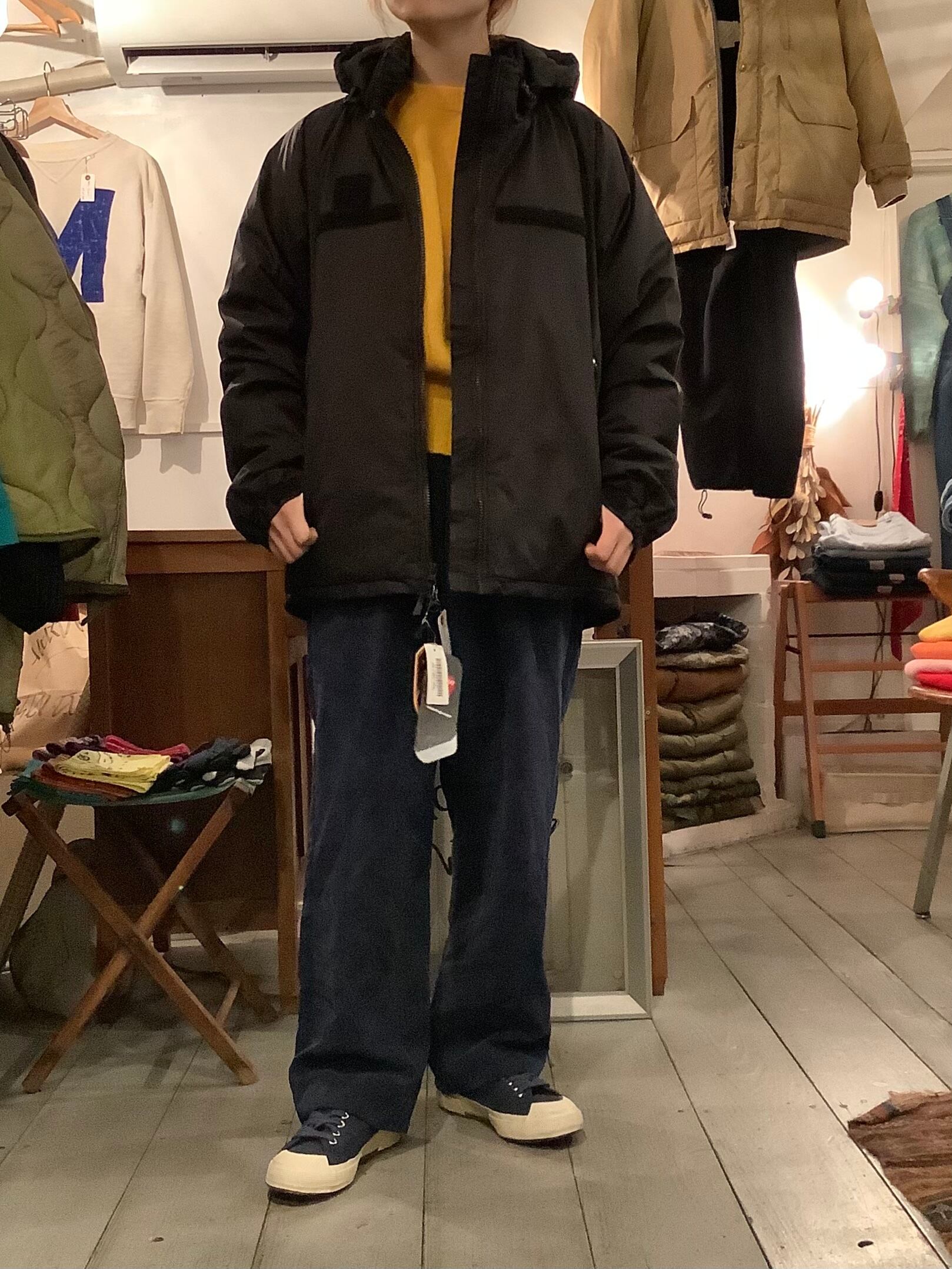 意外にもインナーはニットやスウェット十分に着込めますよ!合わせやすいブラックカラー、サイズも男女問わずお使い頂けます。