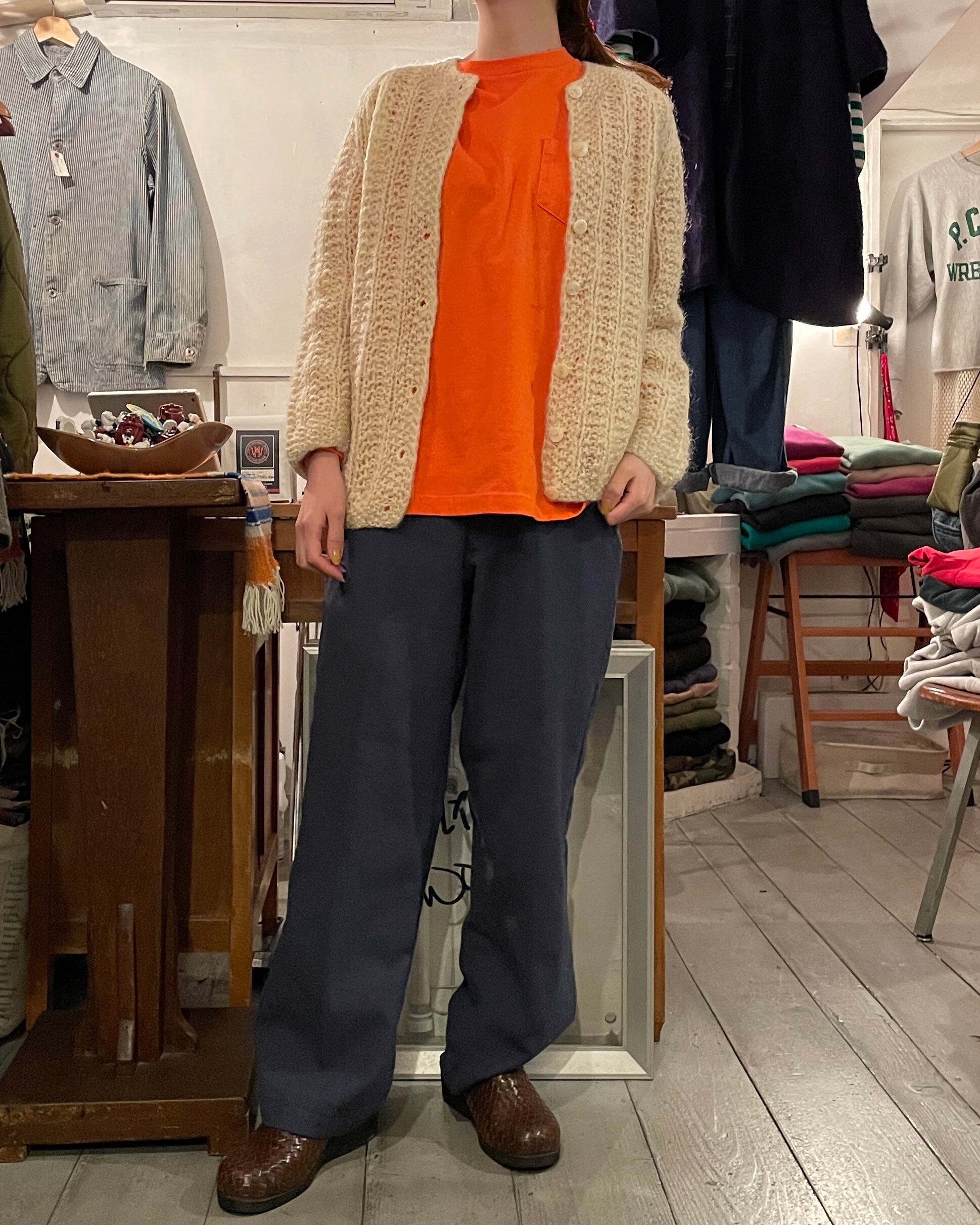 キレイなホワイトカラーのニットカーディガン。