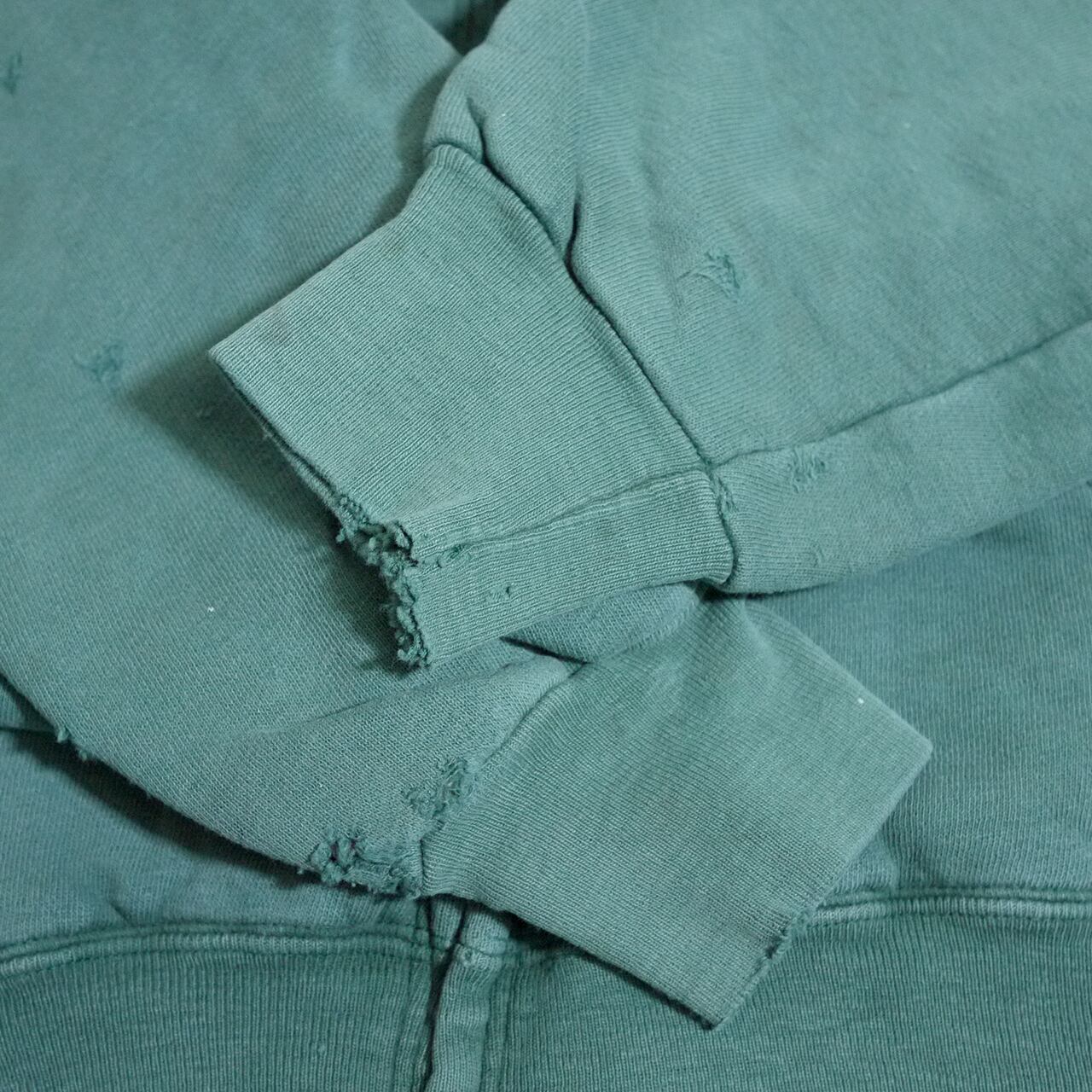 フェードしたボディカラーとダメージがVintageスウェット特有の雰囲気とマッチ。