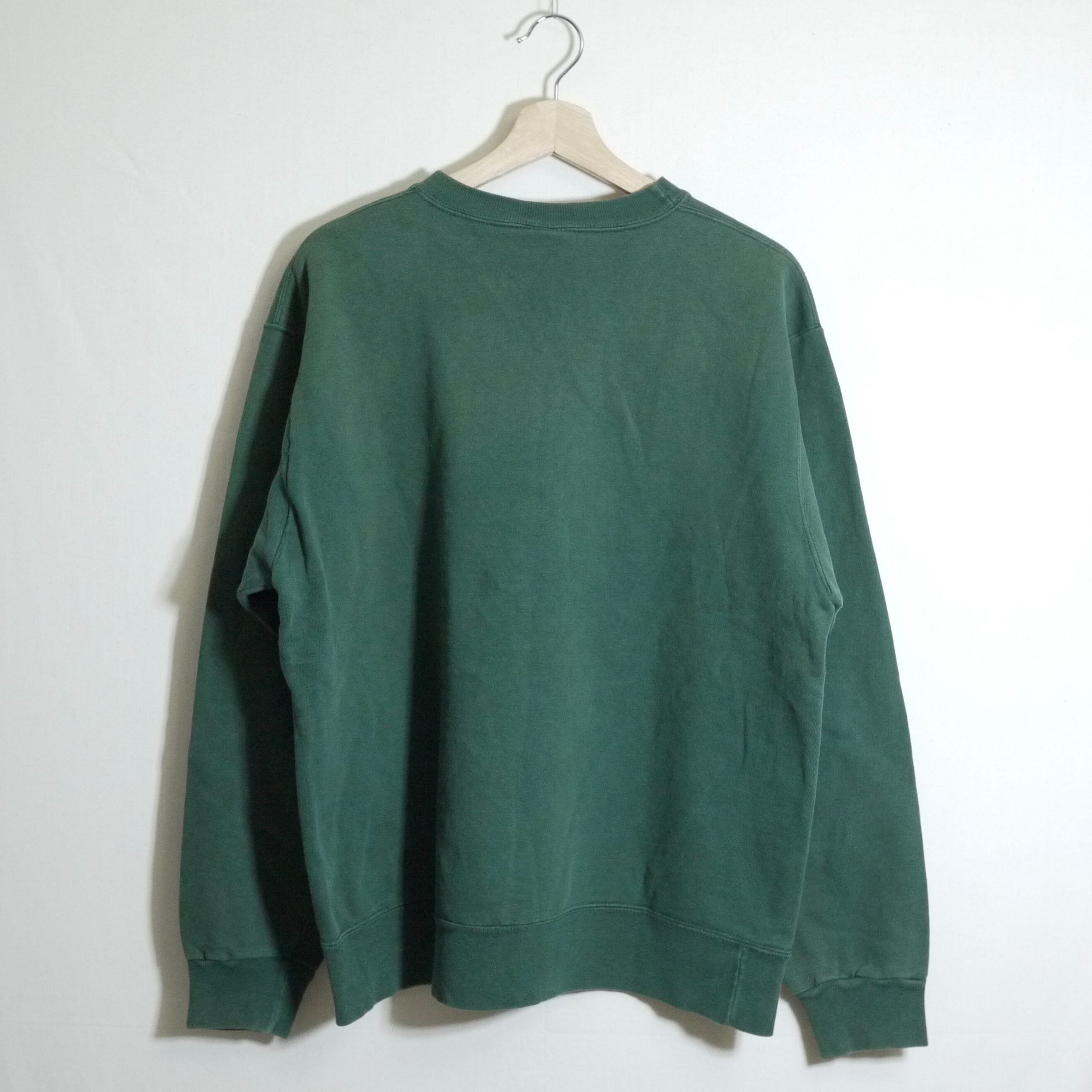 少し褪せた雰囲気のグリーンボディが古着らしさのある一着!カラー物でもシンプルな刺繍デザインのみなので着やすいかなと思います。