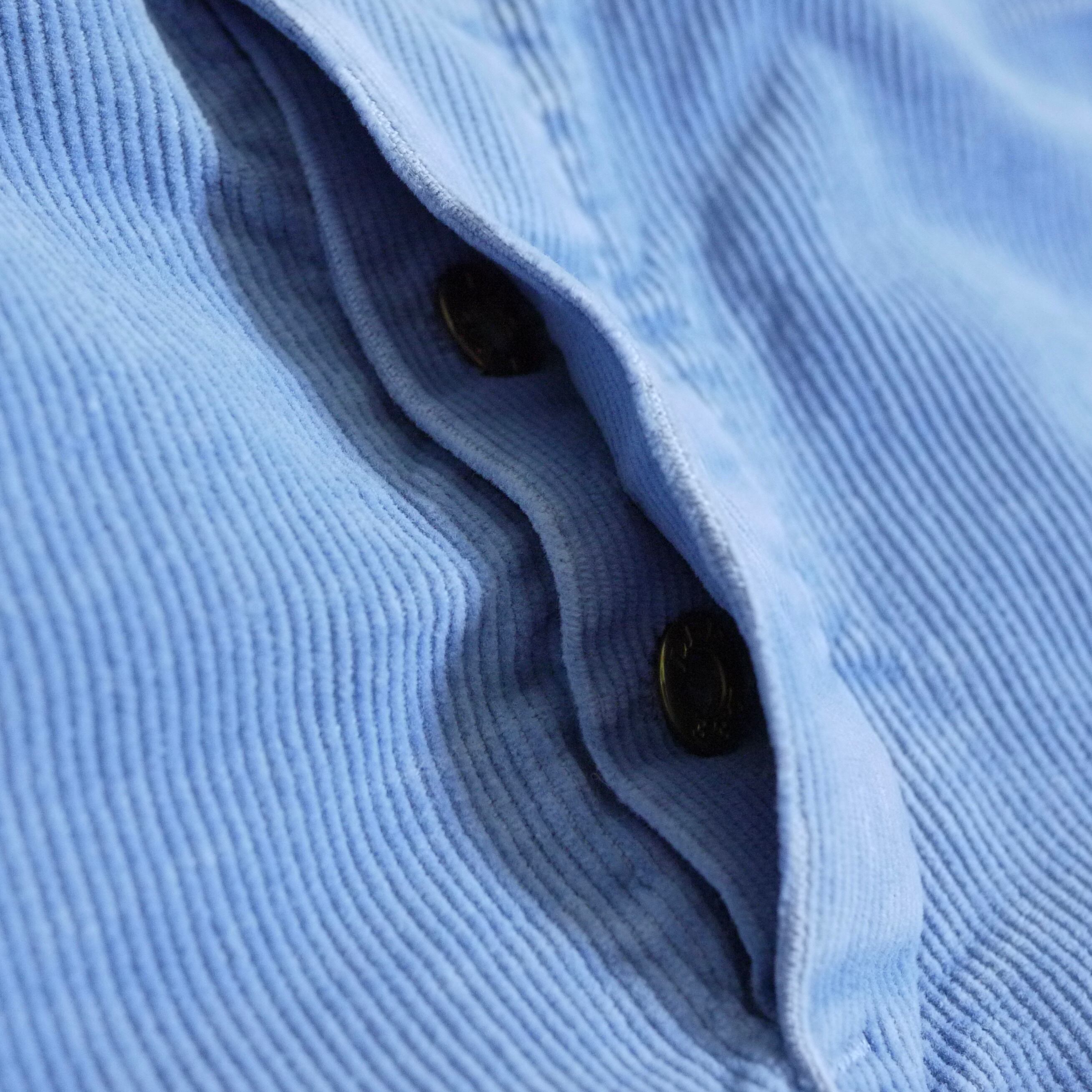 ライトブルーカラーのコーデュロイのオーバーオール。