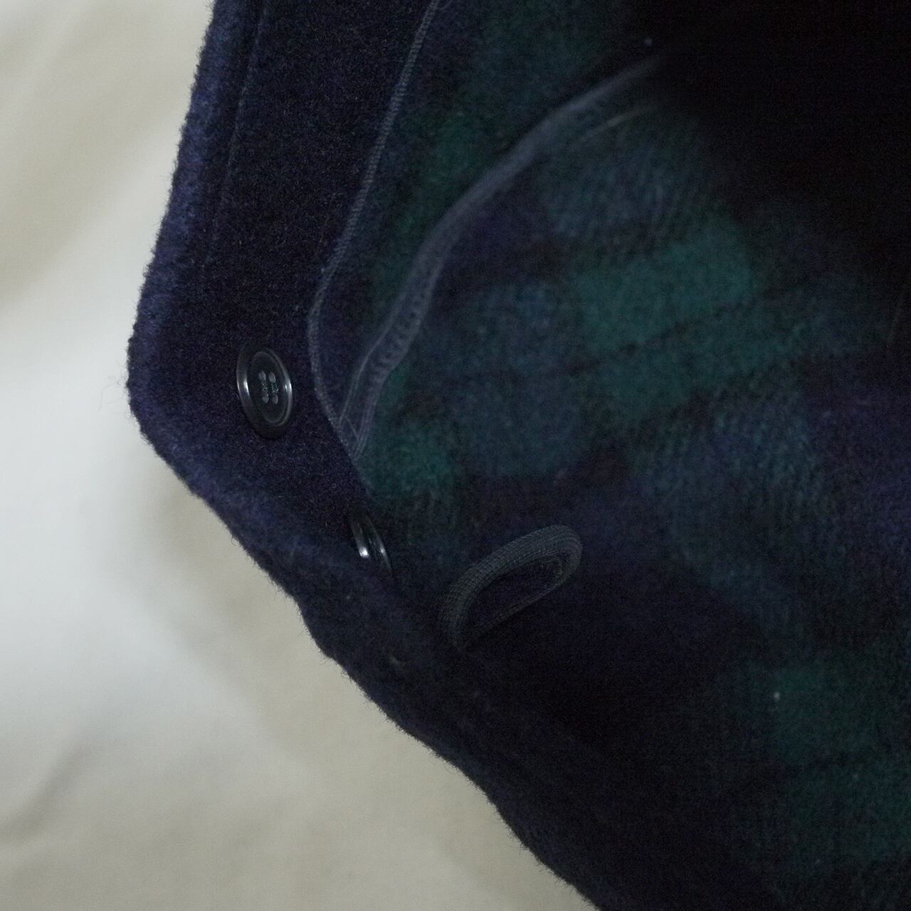 肩回りがややコンパクトなサイズ感。ダッフルコートでもカジュアルすぎないしっかりとした生地、お作りできちんと感のある印象です。重みはありますがその分暖かく感じられます。