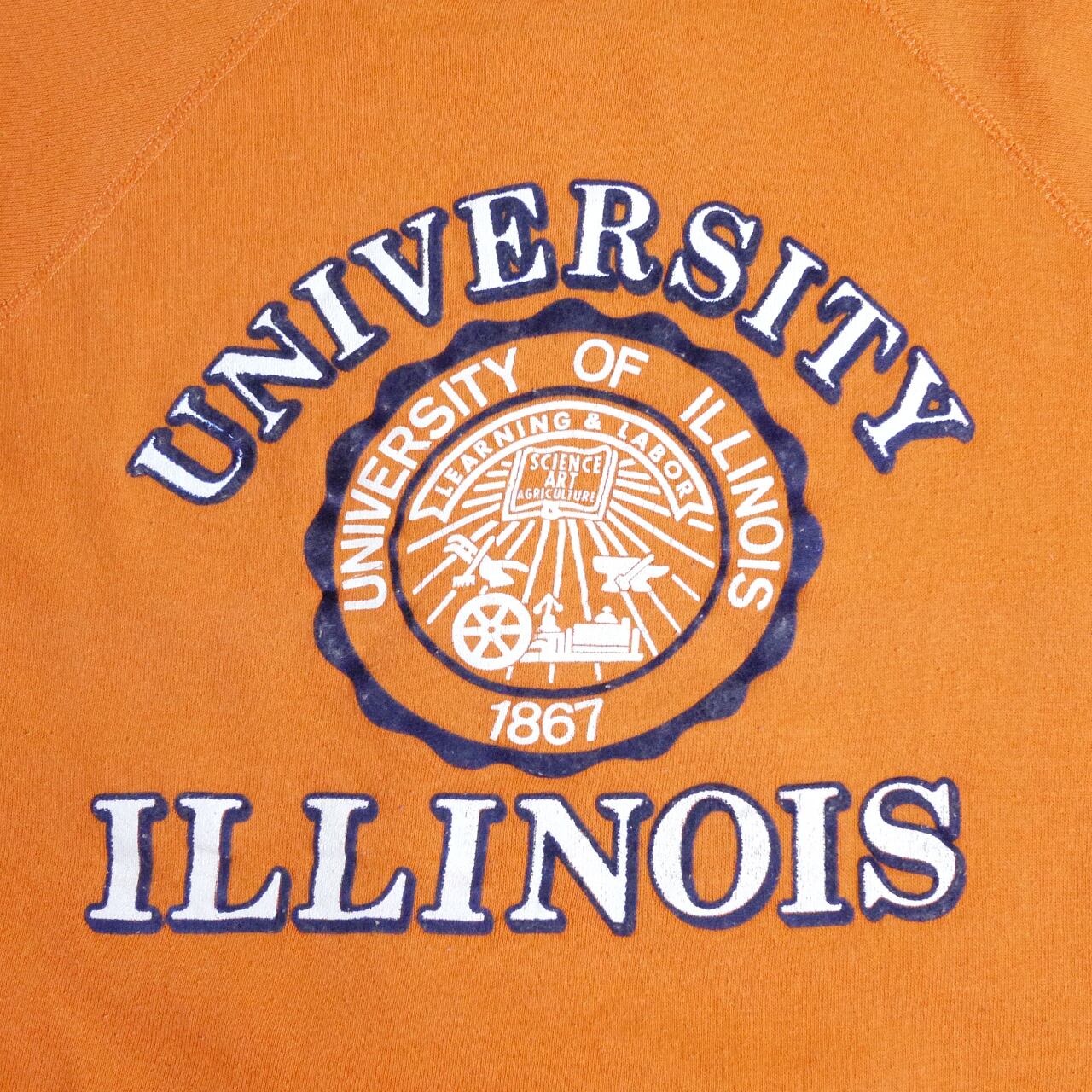 オレンジカラーのボディにカレッジプリントが映えるスウェット。