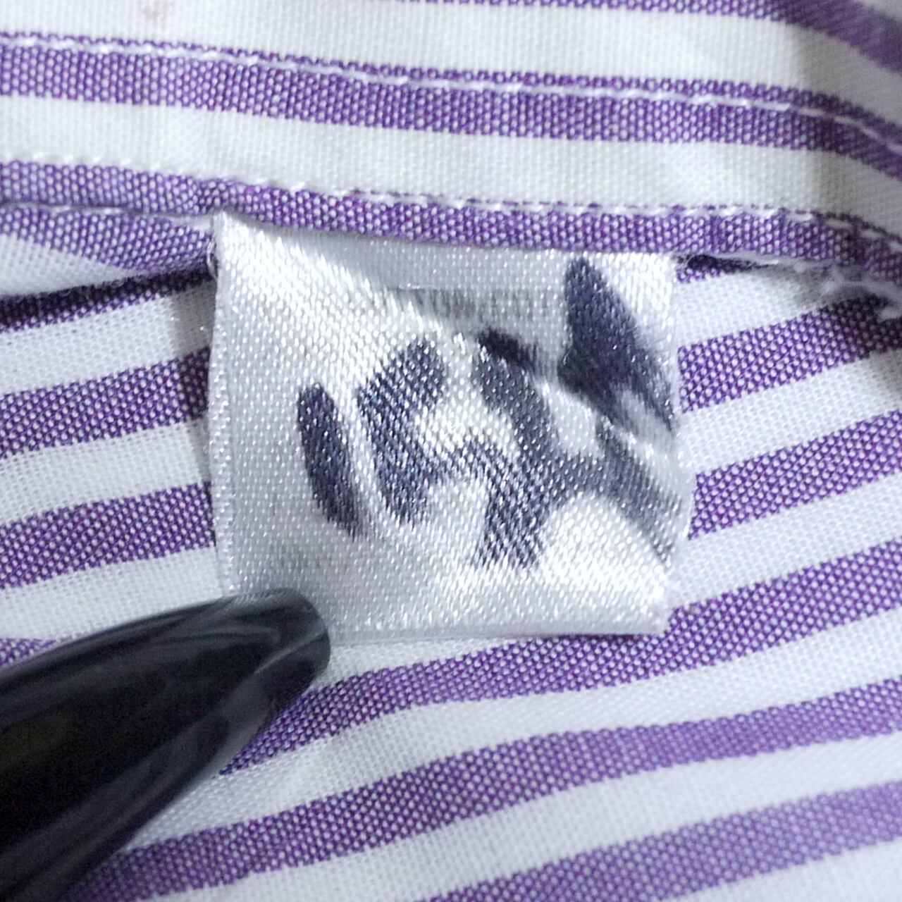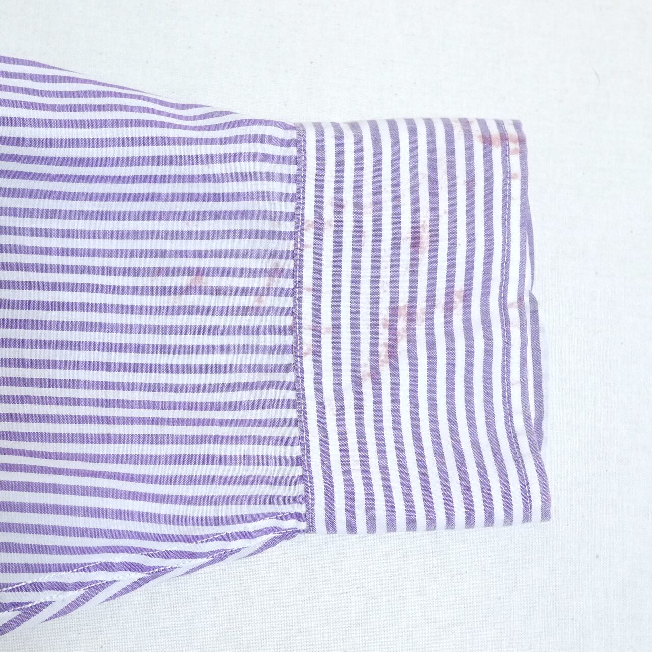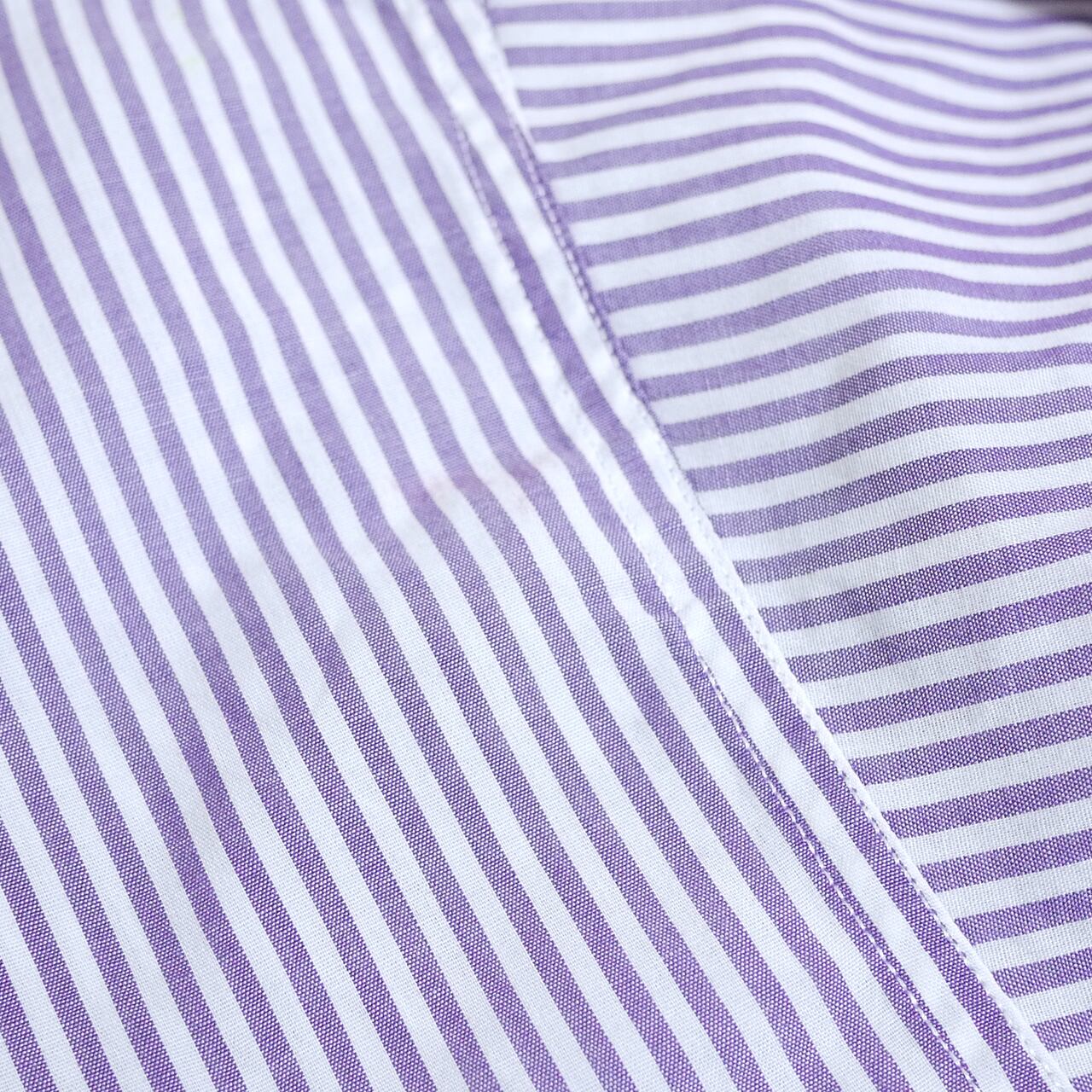 ホワイト×パープルの少し太めのピッチのストライプ柄。