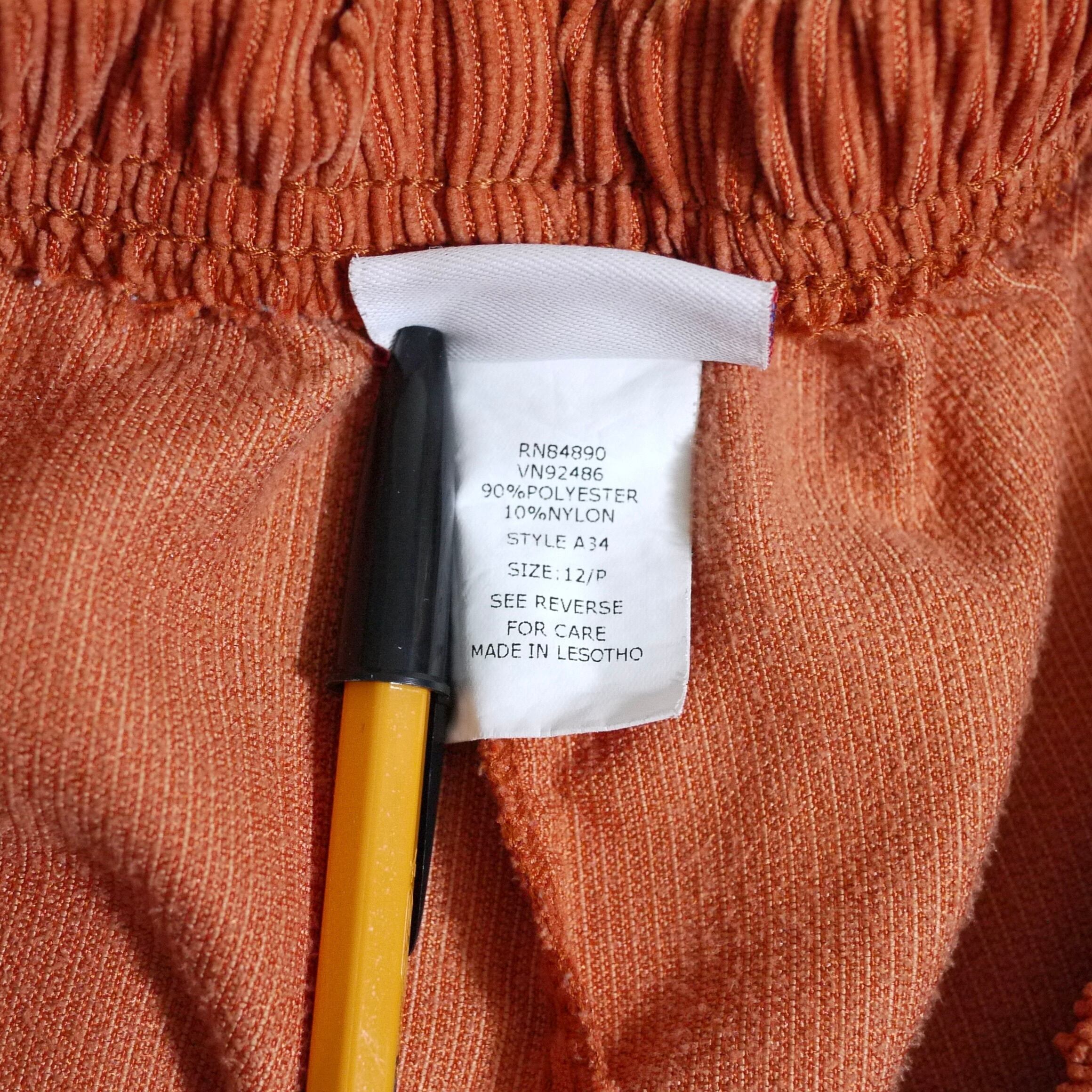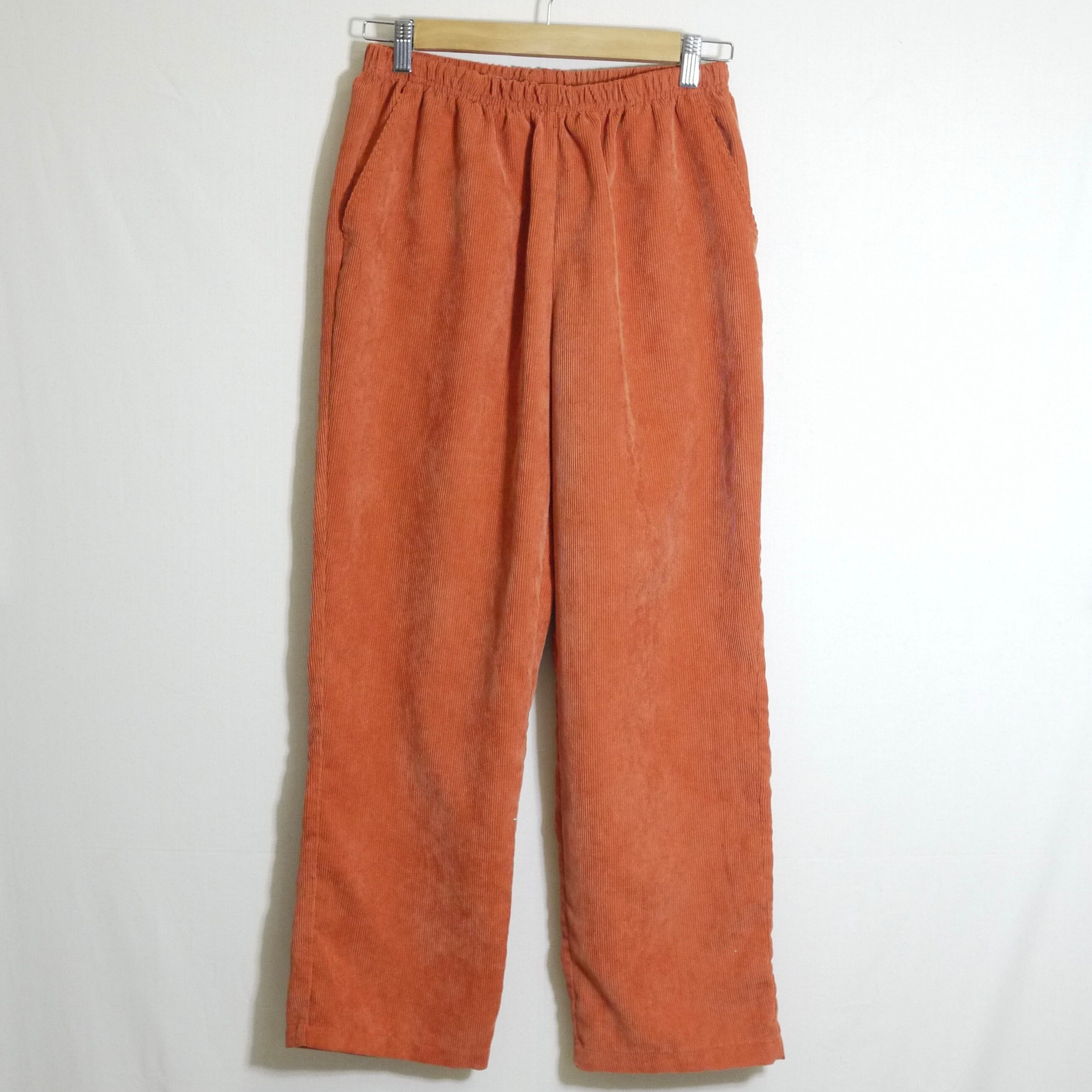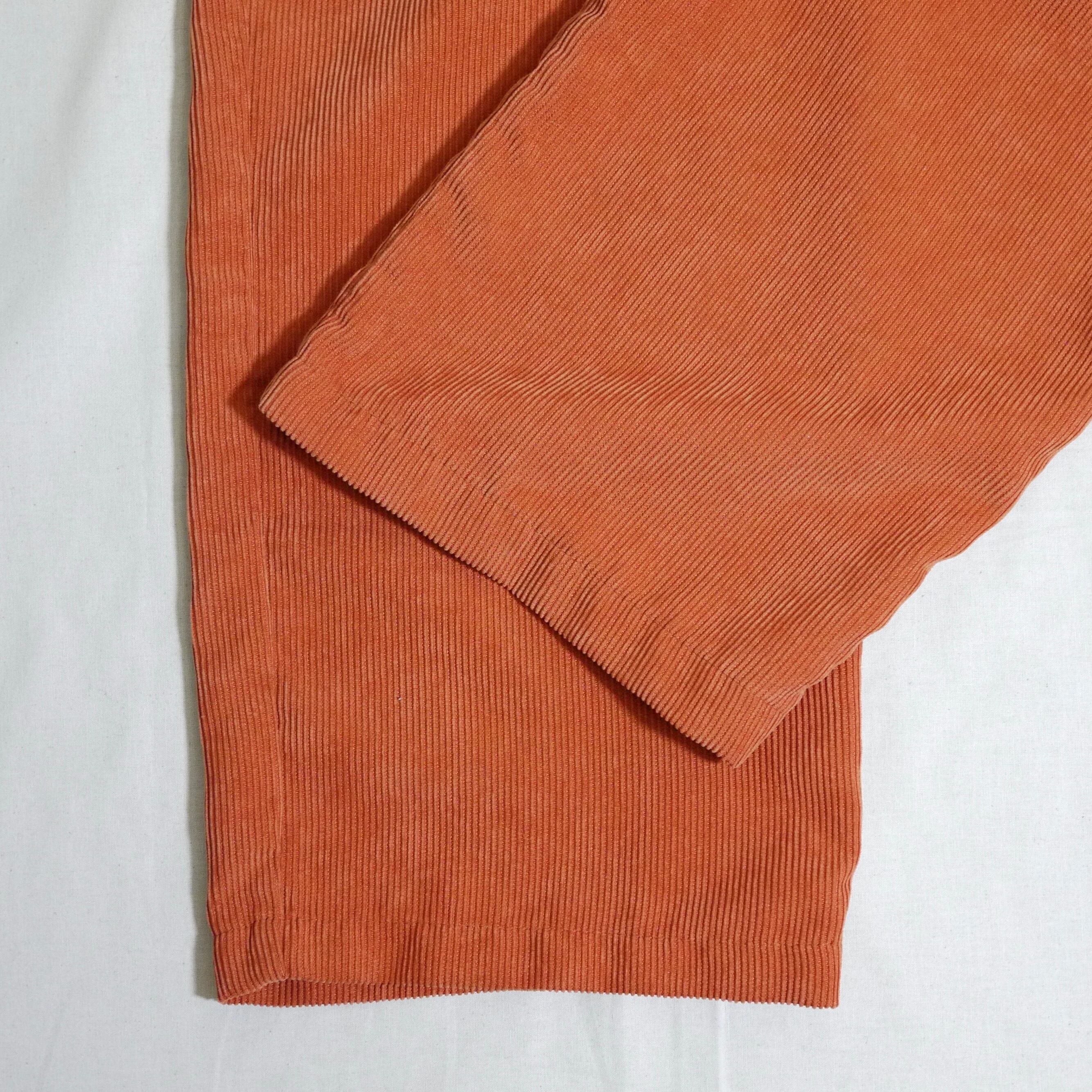 落ち着いたオレンジカラーのコーデュロイパンツ。