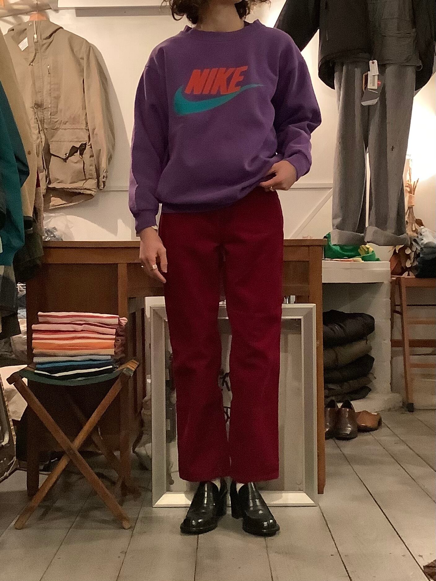 パープルカラーのボディにスウォッシュロゴが前面に大きくデザインされたスウェット。