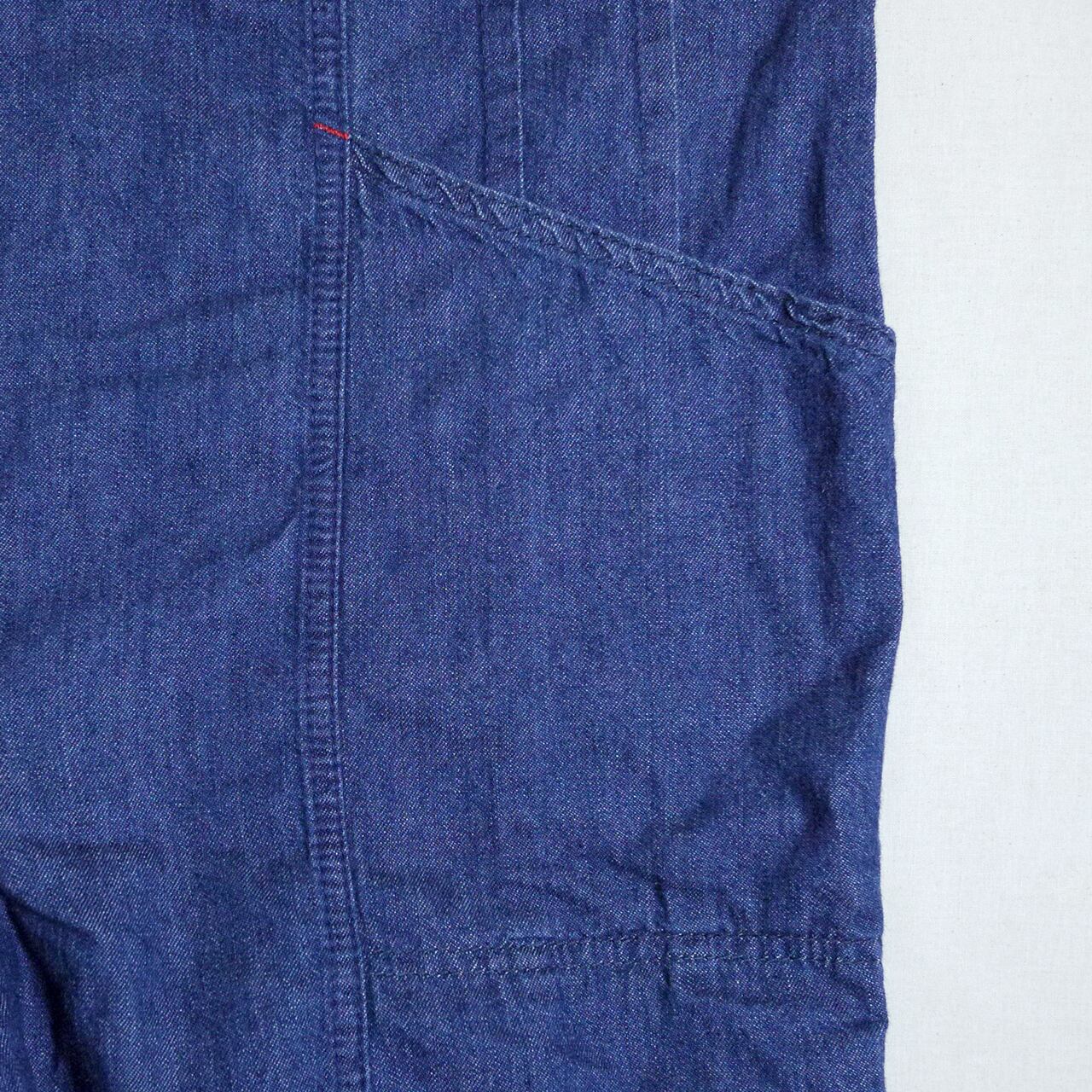 デニム地のジャンプスーツ。