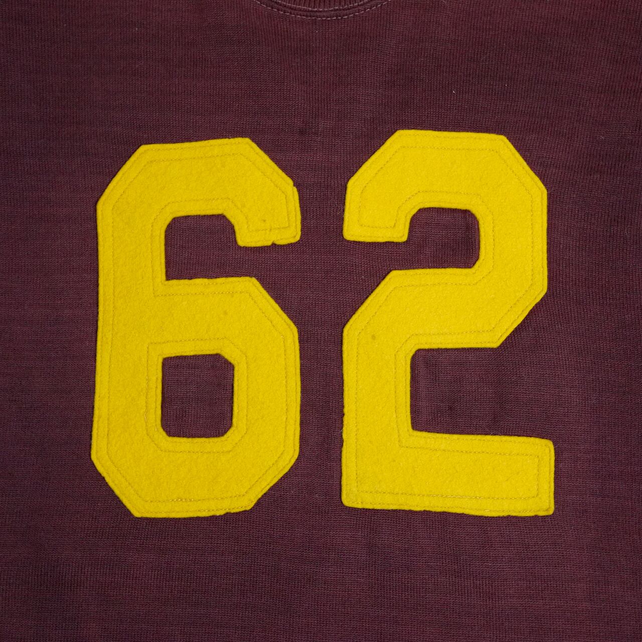 バーガンディカラーのボディにイエローのナンバーが映えるフットボールTシャツ。