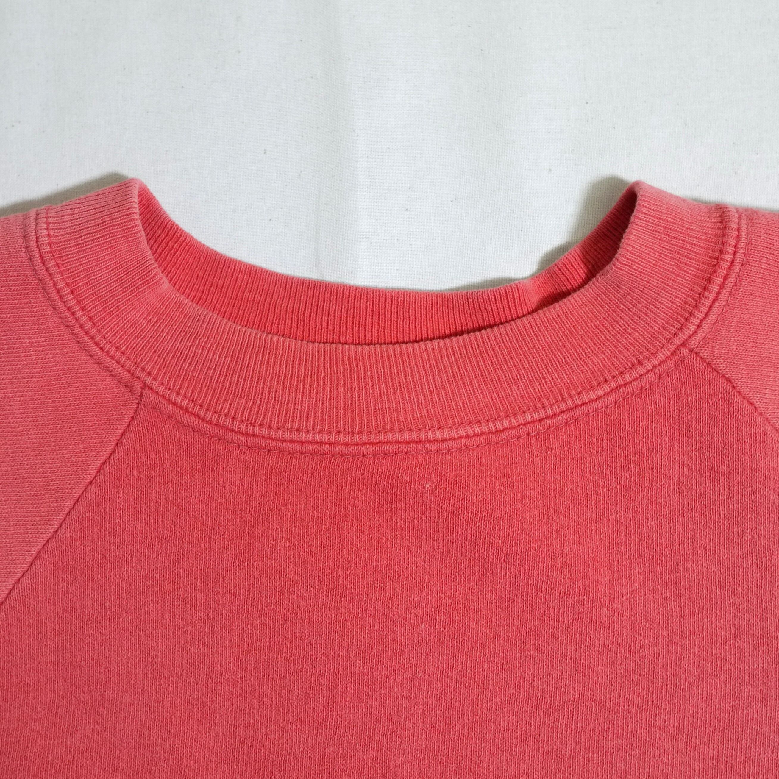 フェードしたレッドカラーのスウェット。