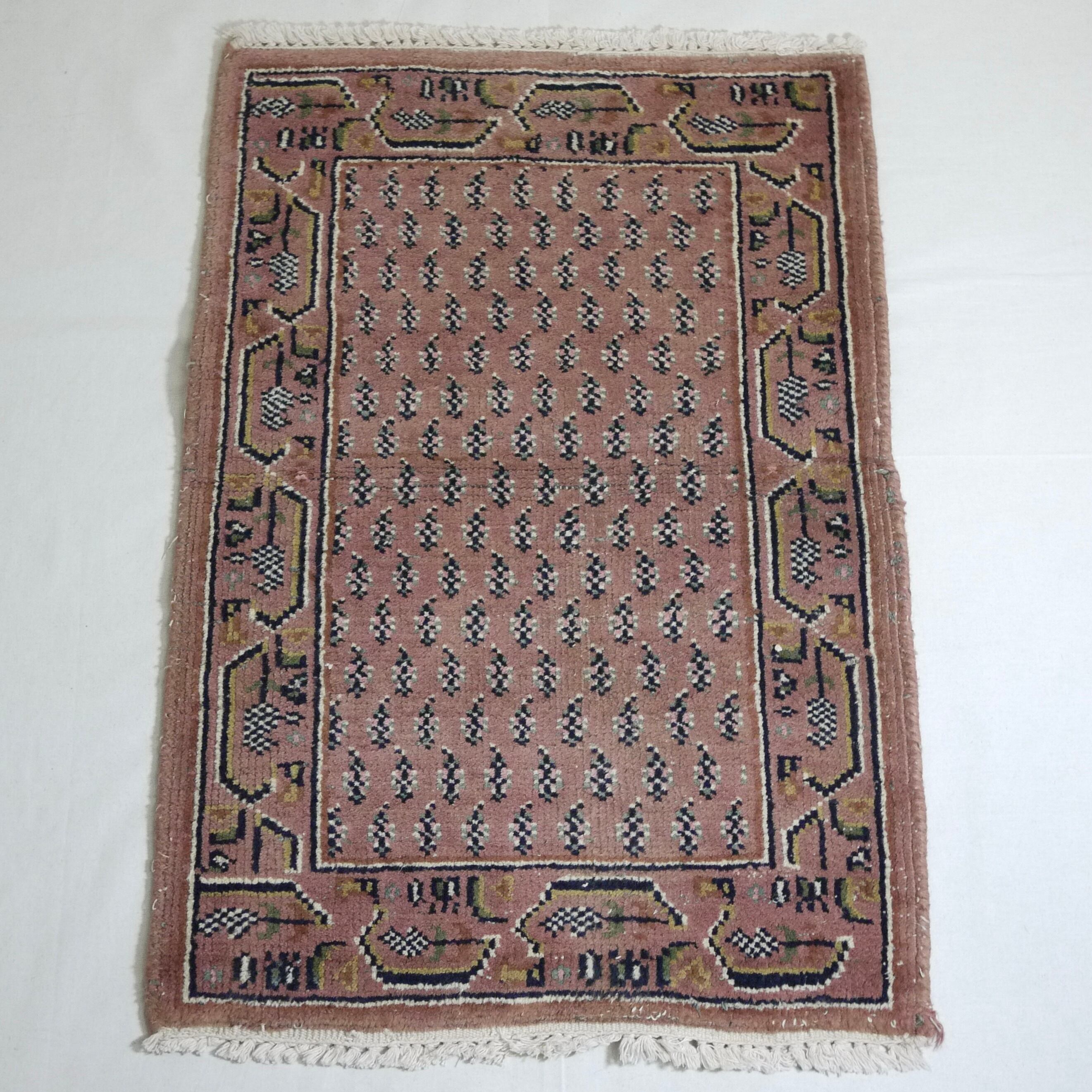 中央部分に連続するモチーフは、元々ペルシャ時代に発案された柄でボテ(ボデ)と呼ばれています。ペイズリーの原案となっているとされており、絨毯界に見られる伝統的な柄の一つ。